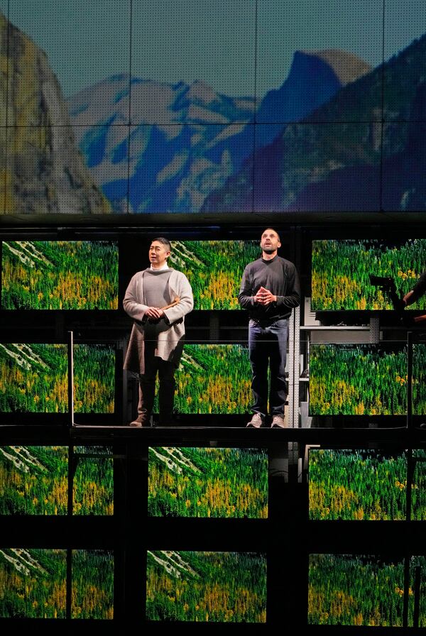 Sarah Larsen is riveting in her role as Laurene Powell Jobs, who married Steve Jobs in 1991 and was with him until his death in 2011. Larsen, a mezzo-soprano, grounds the positive and negative energies of Jobs throughout the opera. For all the energy he burns, she’s a smooth river, or the smooth stones beneath. Larsen is a deep and welcomed breath in the maelstrom of industry and enterprise. Adam Lau plays Kobun Chino Otogawa, a Zen priest and Job’s spiritual advisor. Lau is a bass whose singing resonates in every sense of the word.