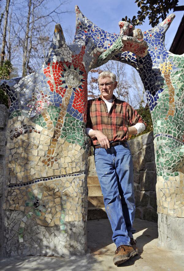 When his marriage ended in the ‘90s, he moved into the basement of his mother’s Smyrna home and began working with ferrocement on an even larger scale. A walk through her steep garden today, which he calls Freedonia, is like a tour through a fever dream, adorned with undulating concrete flowers, tile-adorned tentacles, birdbaths and walkways.