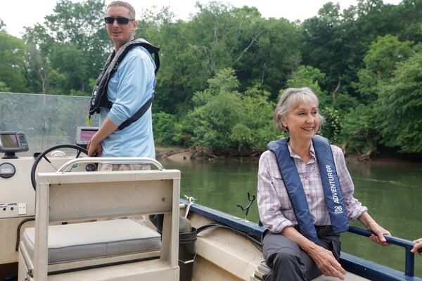 She retired as leader of the Chattahoochee Riverkeeper in 2014. Piloting the boat is the new riverkeeper, Jason Ulseth, with his colleague, executive director Juliet Cohen, on board.