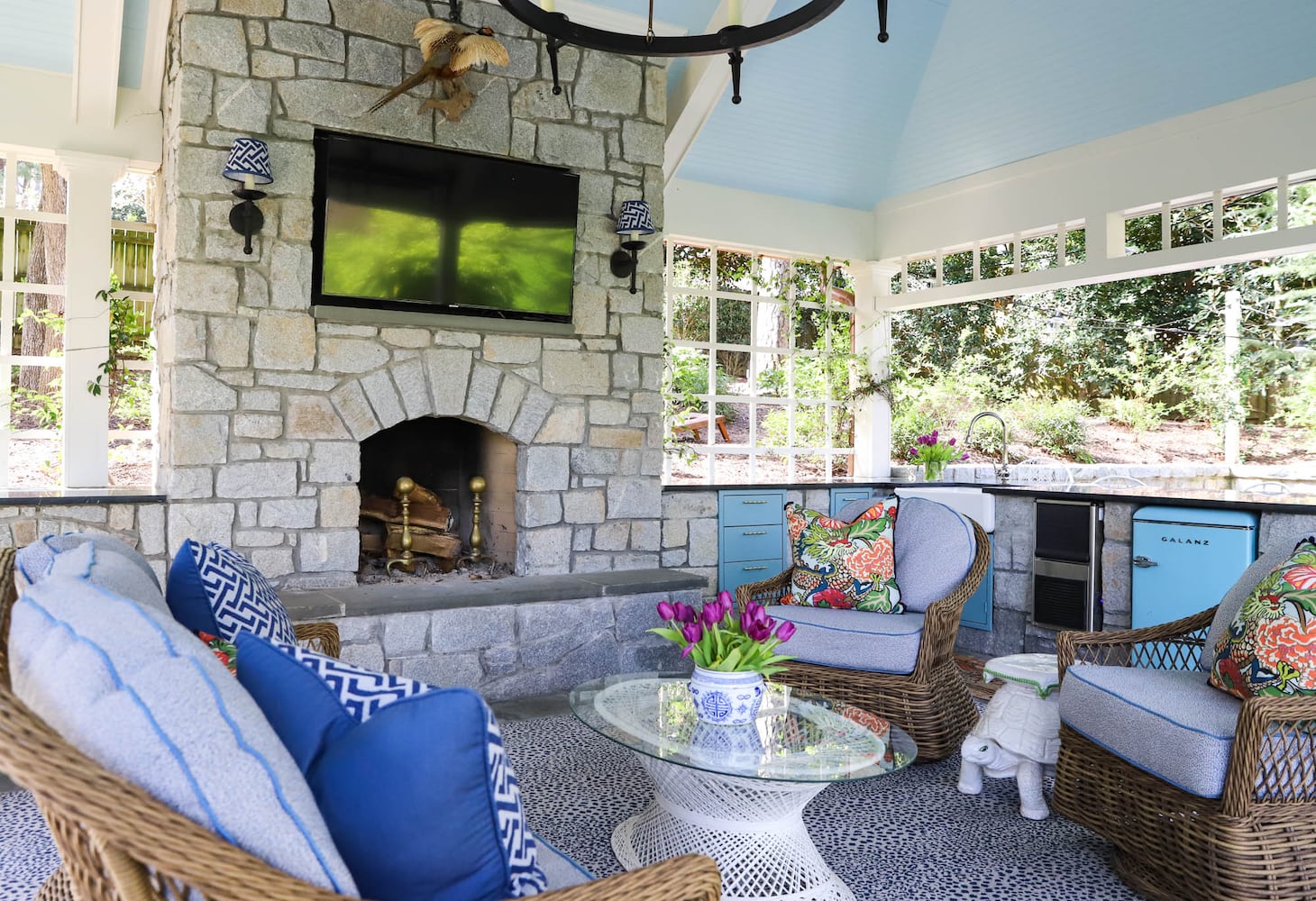Residents: Whitney and Nathan Durham, their two sons, 11-year-old Benson and 9-year-old Graham, and their two yellow English Labradors, Gus and Annie. Whitney is the owner and lead designer of Whitney Durham Interiors, and Nathan is the managing director of Marsh McClennan Atlanta.