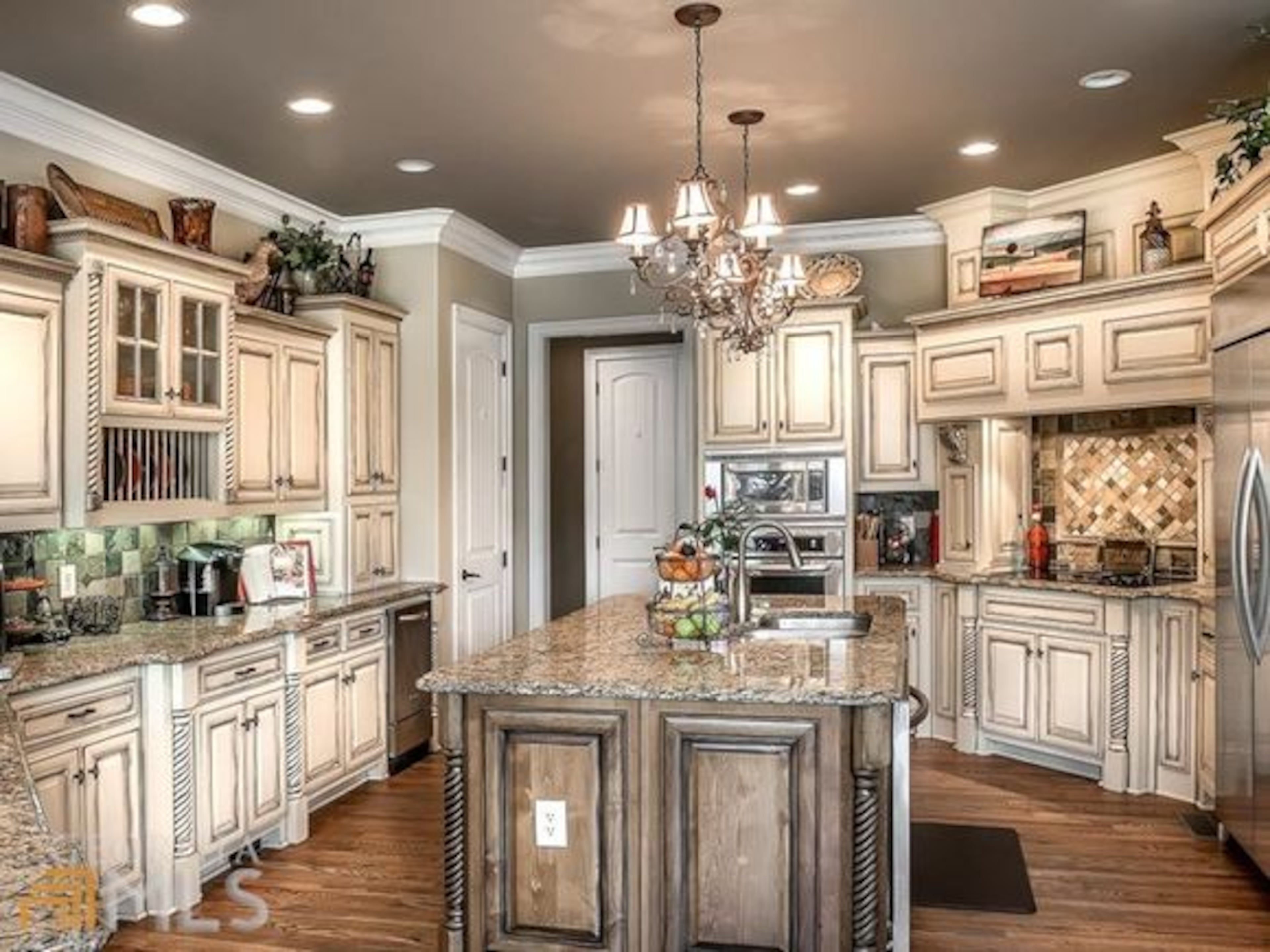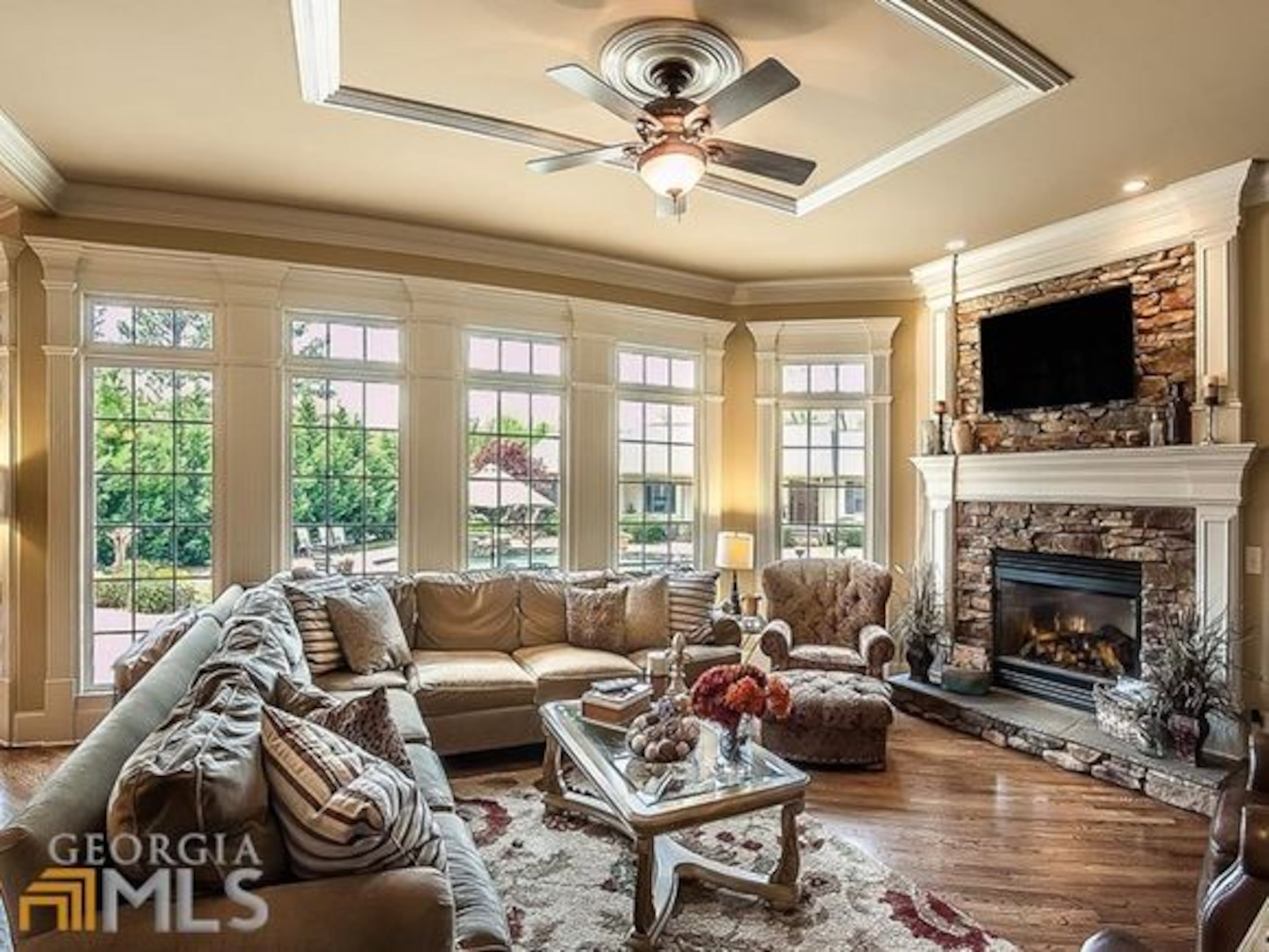 “With lushly landscaped grounds, the drive up appeal on this elegant home is stunning!” Realtor.com’s listing of the home said. “Off the foyer is the large formal dining room having a beautiful chandelier and the handsome library with a dramatic tiered ceiling, fireplace and a wall of built-in shelving. Open to the kitchen and breakfast room is the great room with soaring ceilings, gas fireplace, and wall of windows overlooking the pool. The dream kitchen offers upscale appliances including six burner Wolf gas range, granite CT, and large island. The master suite is an amazing retreat having a large sitting area, dramatic lighting, and spa-like bath. There is also an ensuite guest room downstairs.
