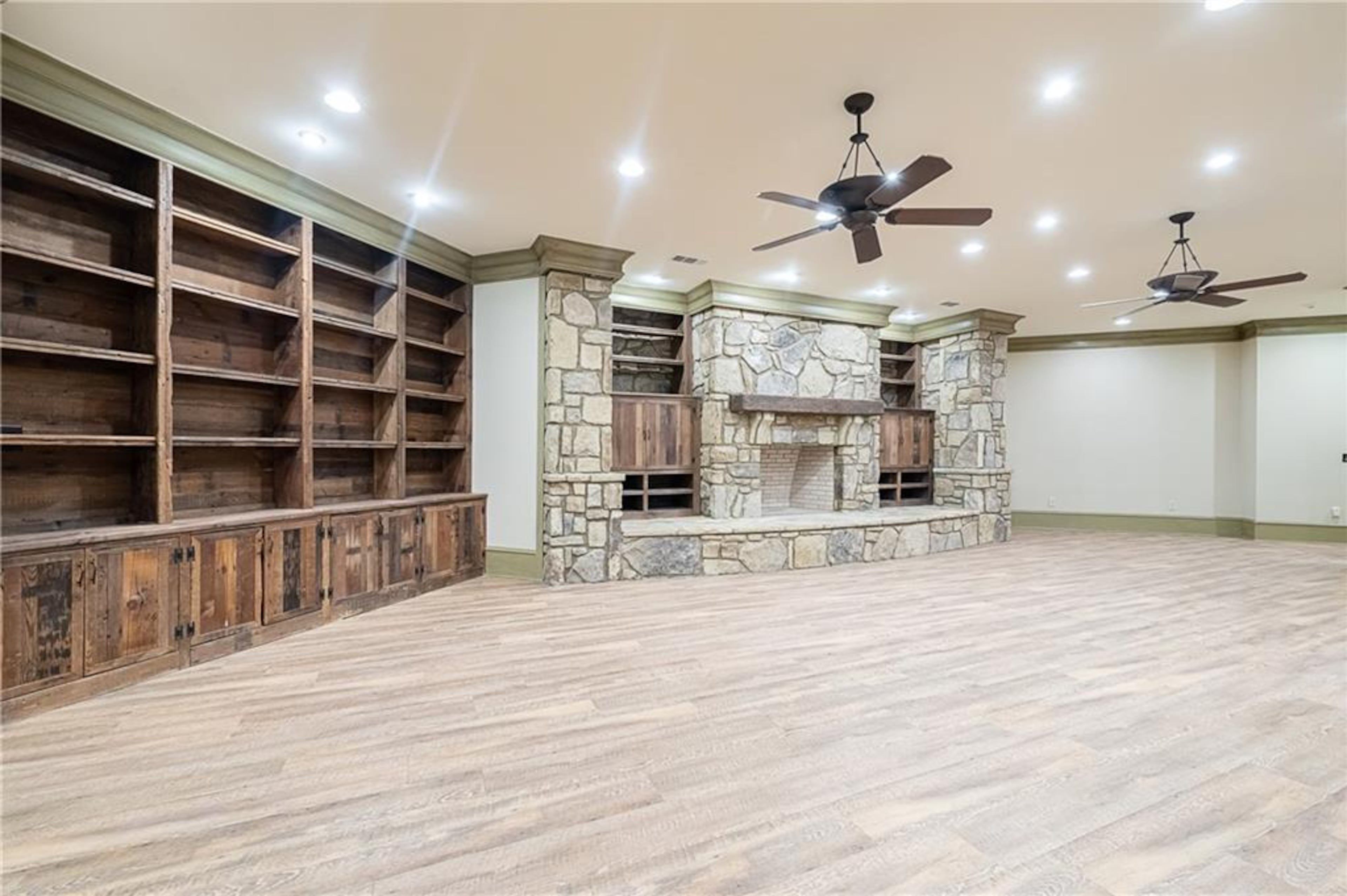 On various real estate websites, the realtor describes the home’s “stunning cherry hardwoods running through the main level. Floor-to-ceiling windows showcase the cascading two-story waterfall and main level pool. Opening to the two-story family room, the chef’s kitchen features handcrafted cabinets, top of the line appliances and a beautiful brick-arched butler’s pantry.”