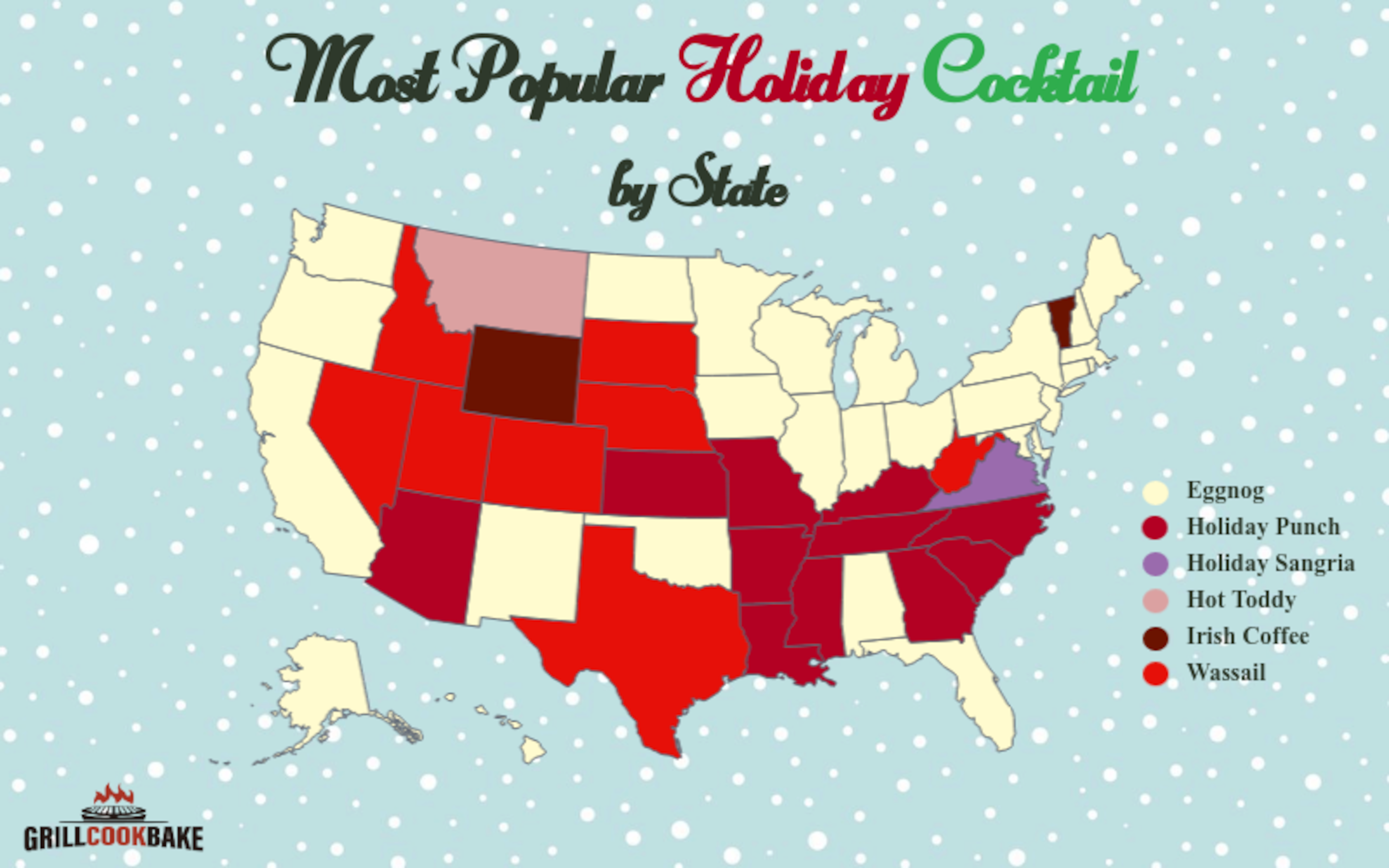 A new analysis from Grill Cook Bake, a food and cooking reviews site, evaluated data on which holiday cocktails are being consumed around the country.