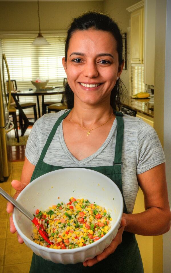 This fresh corn salad will feel very familiar. Liliane Chick of Yellow Blossom says it’s a very common dish in Brazil, a salad that is easy to customize. “If you don’t like peas, add some chopped green pepper, for example. The one thing you can’t do without is the garlic.”