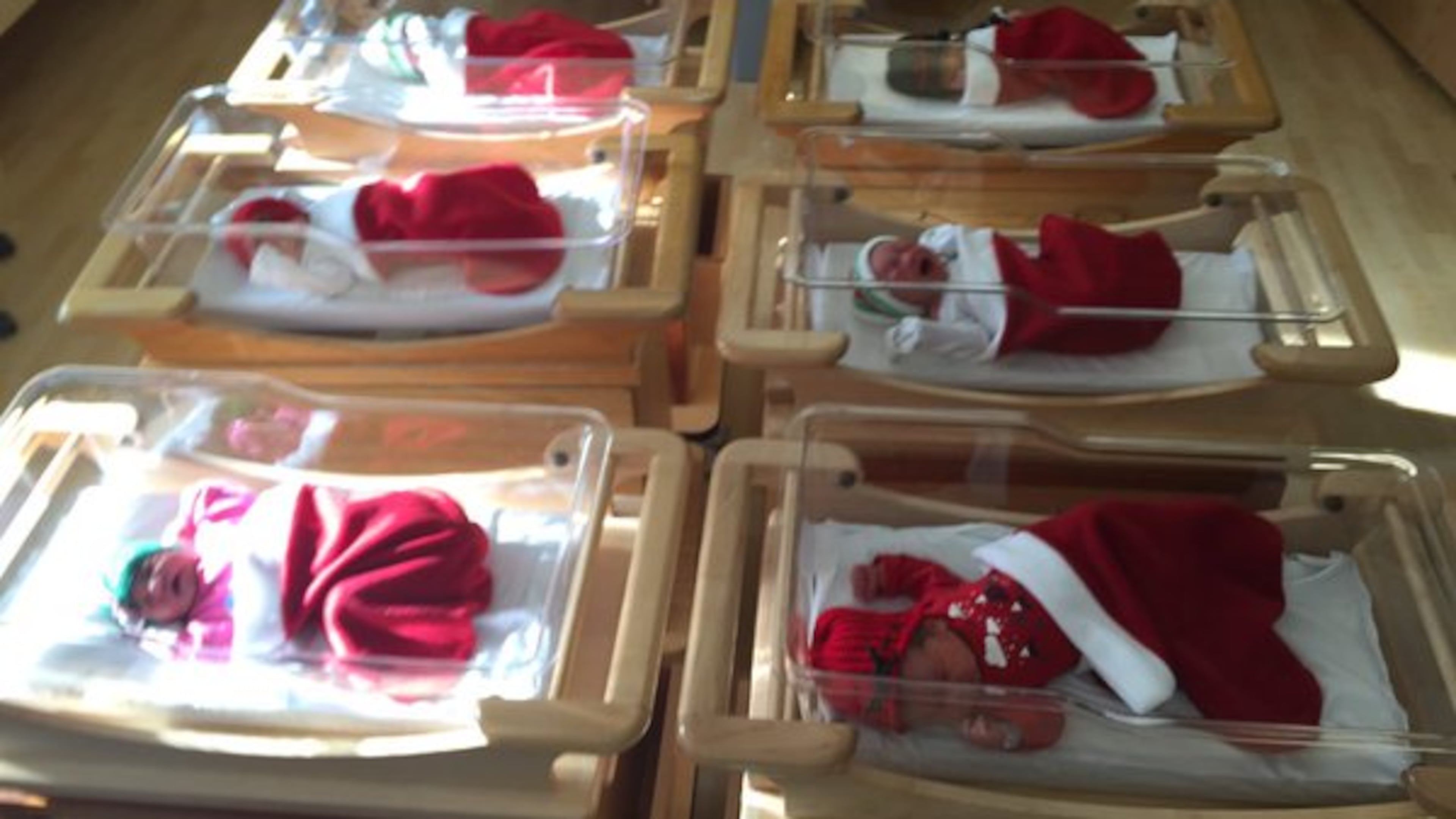 For those giving birth at Magee-Womens Hospital of UPMC in Pittsburgh on Dec. 24 and Dec. 25, the hospital is celebrating the babies by tucking them into festive stockings and topping their tiny heads with hand-knitted green and red caps.