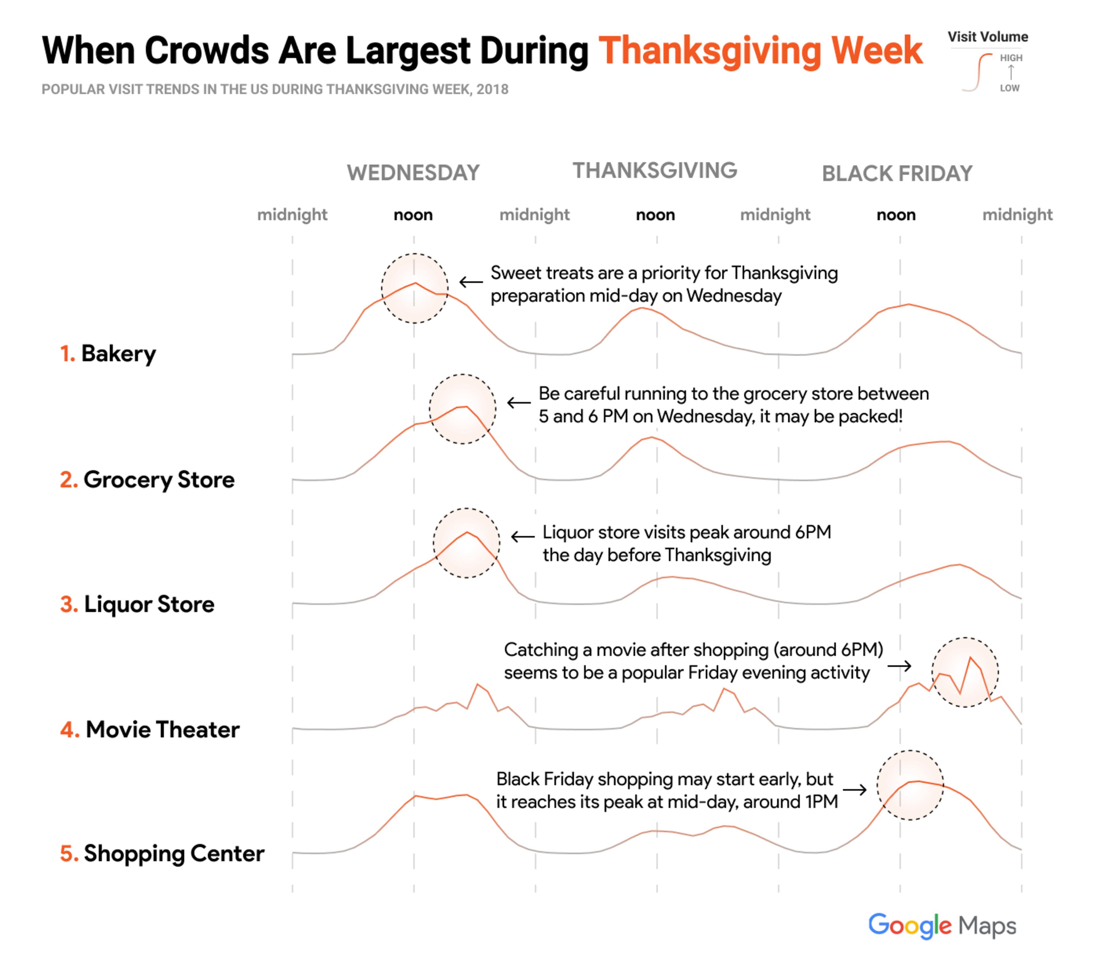 To take a bit of the stress out of your holiday prep, Google Maps and Google News Initiative have determined the best and worst times to travel, shop for your holiday meal, go out on Black Friday and more.