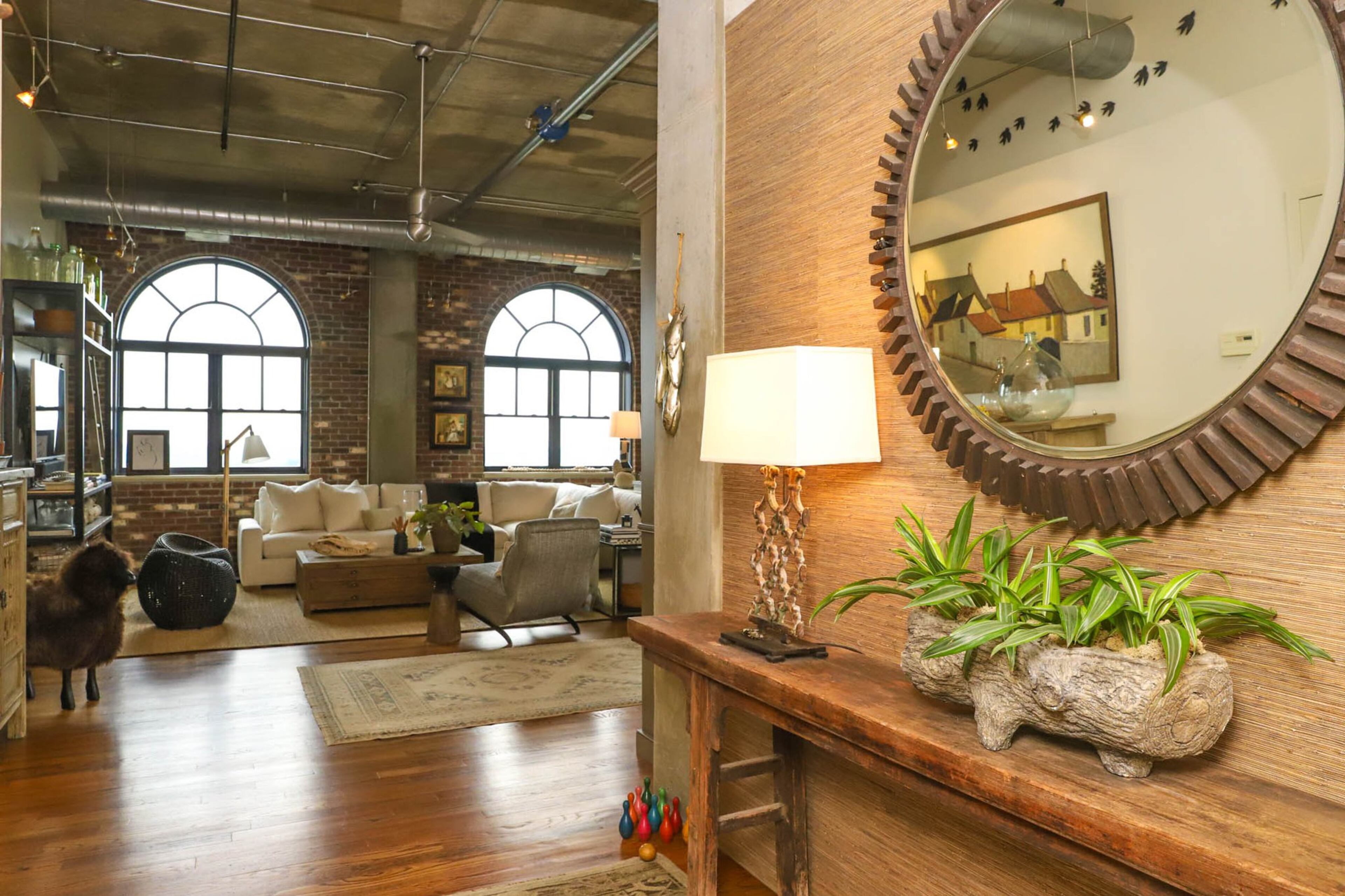 Mozley’s unique decor embraces the loft architecture of her home, working with the soaring ceilings and exposed brick and ductwork.