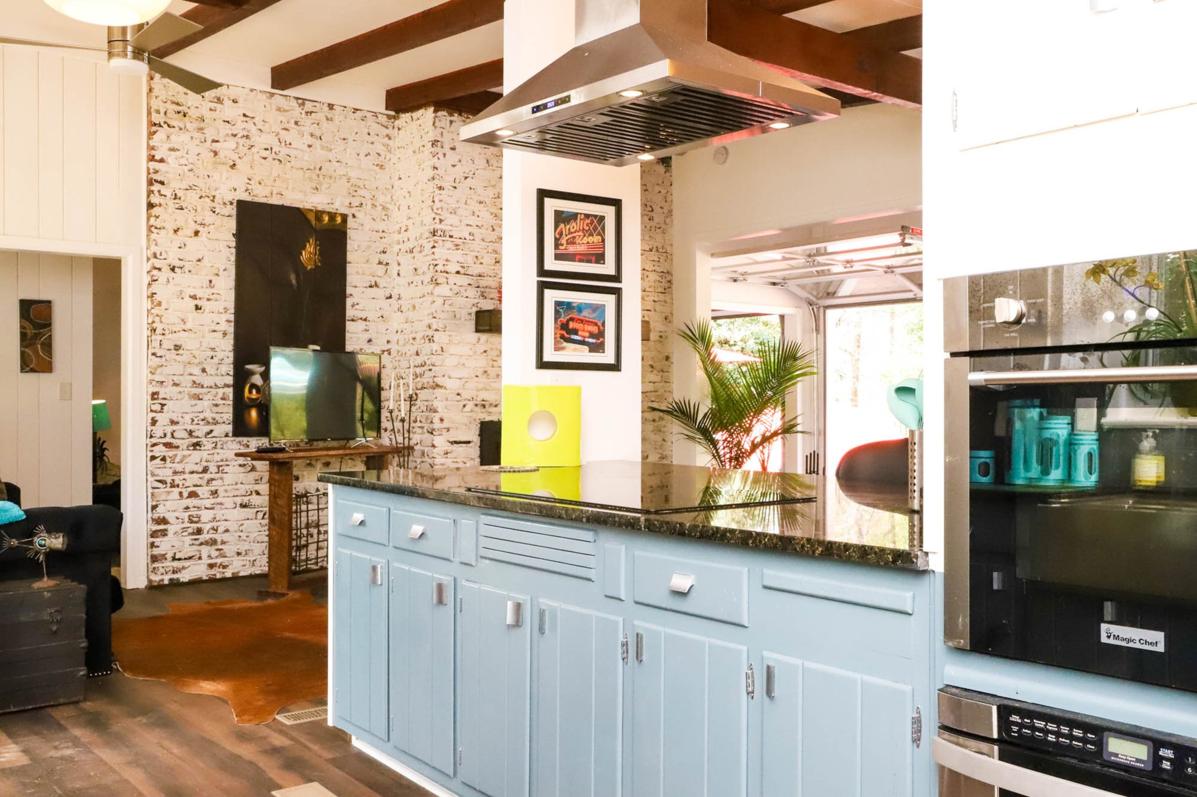 The small lake behind the house is what drew Michaela Graham to her home. When she first saw it in 2018 the home had a mold infestation and Michaela didn’t have the money on hand to handle the project. She kept thinking about the midcentury modern home on the water, and when the home’s listing crossed her path again last year she knew it was time to make a move.