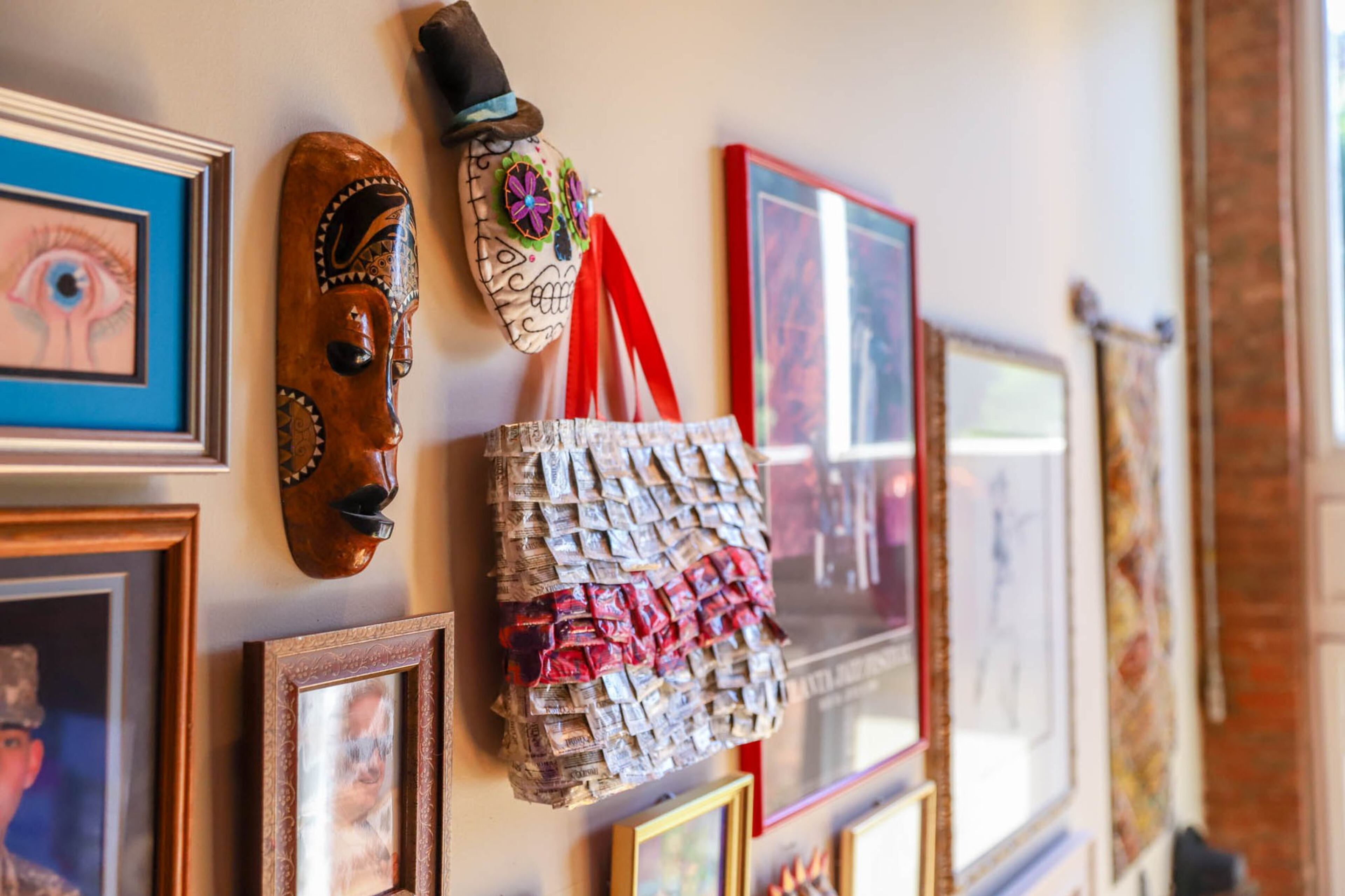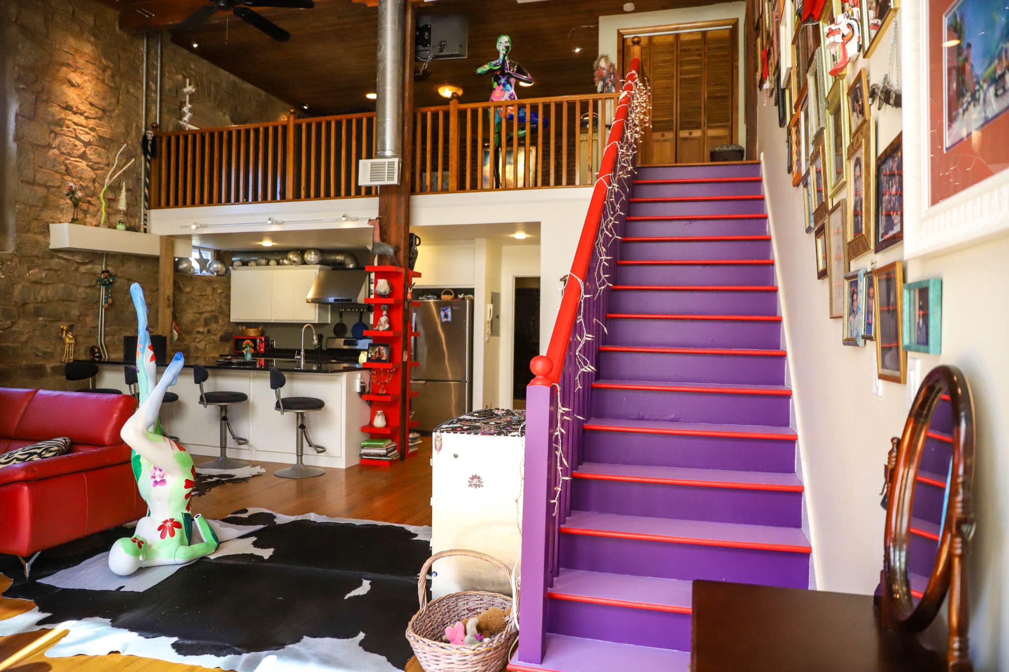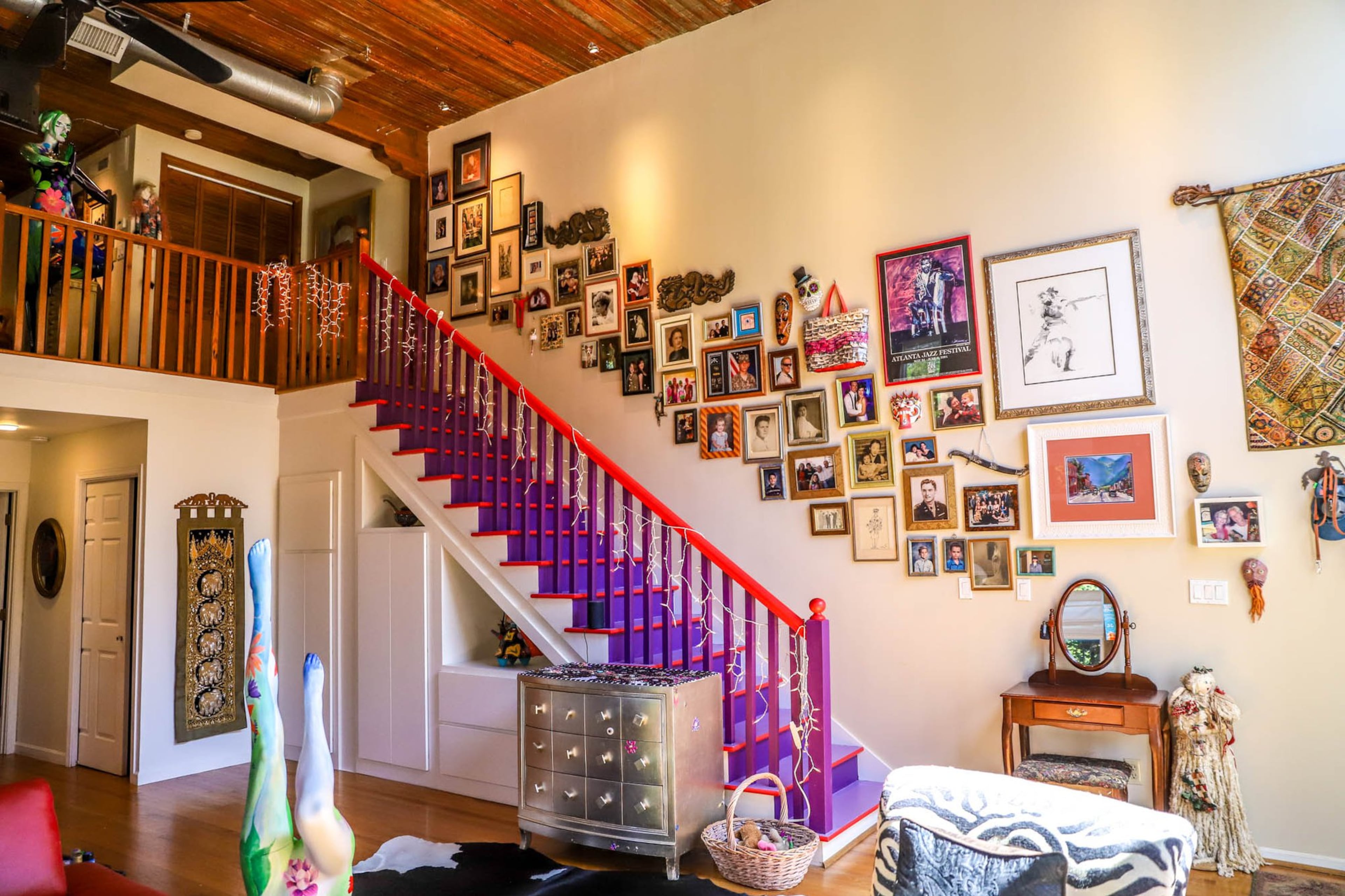 Art from Thailand, Istanbul and their own families fill the Castleberry Hill loft of Diana and Kevin Sheldon. In a large gallery wall that stretches the length of their staircase there are paintings from Italy, a mermaid figurine from Alaska, wood carvings from Thailand, a sculpture by Diana’s daughter and more.