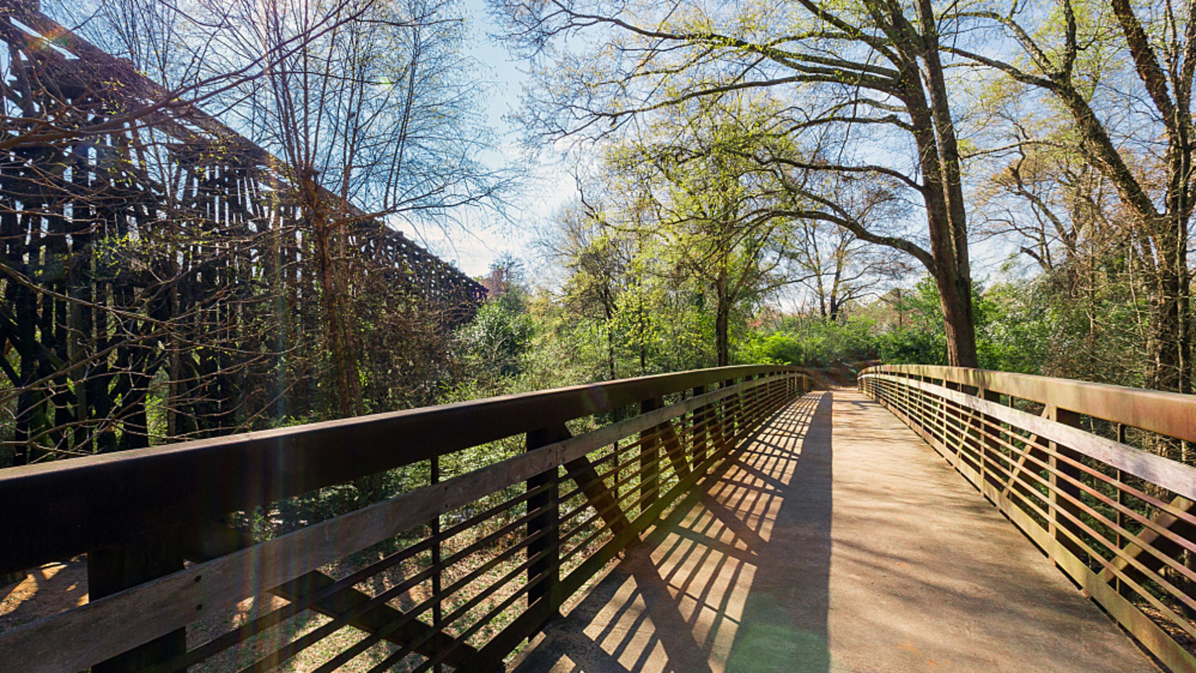 Hike or run the North Oconee River Greenway, a series of connecting trails that snake through the city near the University of Georgia campus. Cook's Trail meanders the shores of Sandy Creek from Sandy Creek Park to Sandy Creek Nature Center, crossing through marshland over boardwalks and through hardwood and pine forest. For more mileage, continue along the four-mile paved Greenway to Dudley Park, and then check out the park on the Athens Heritage Trail.