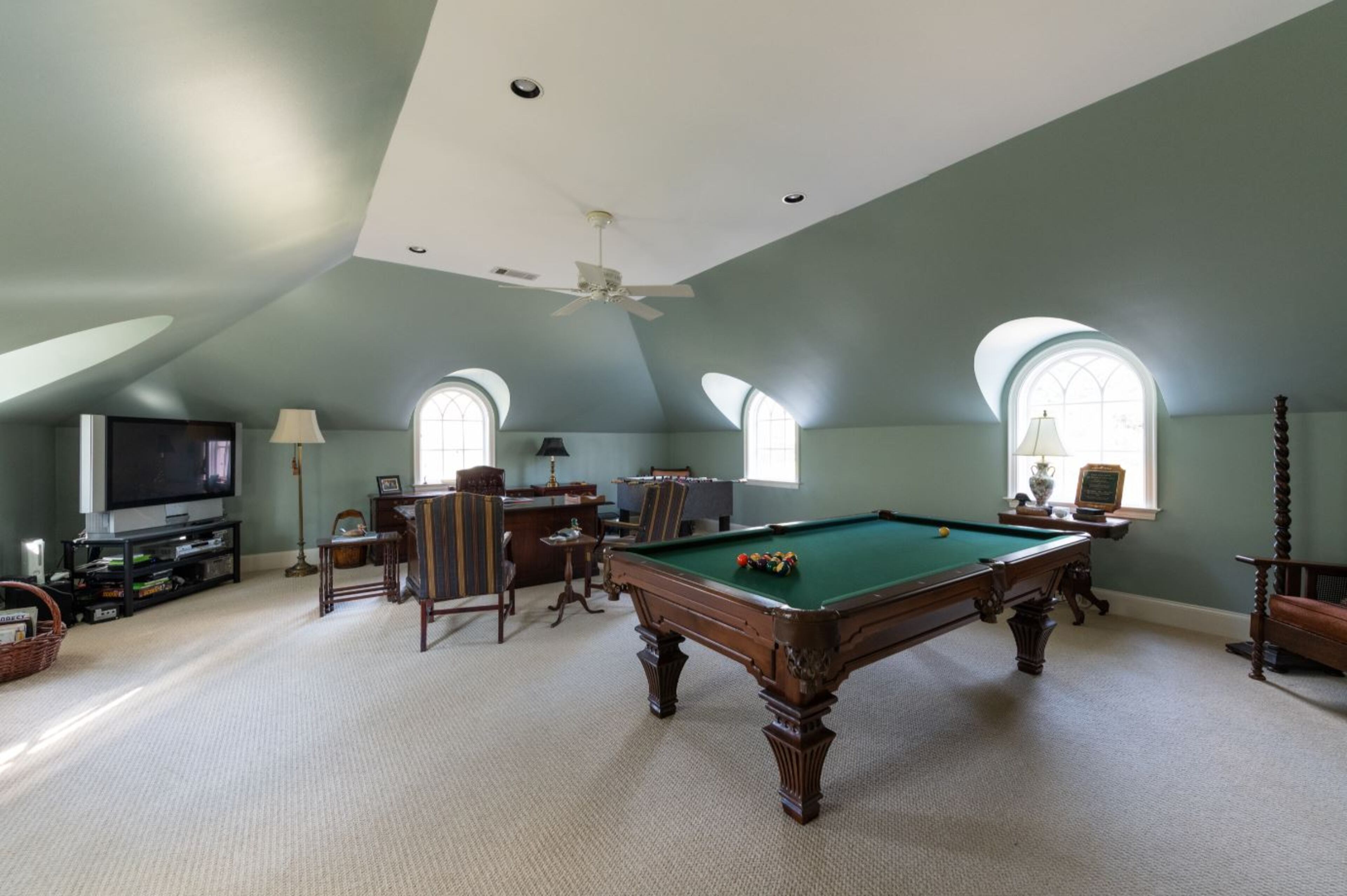 On more than an acre of land, the outdoor entertaining space has a patio, grill and fountain, overlooking the pool and lounging area.