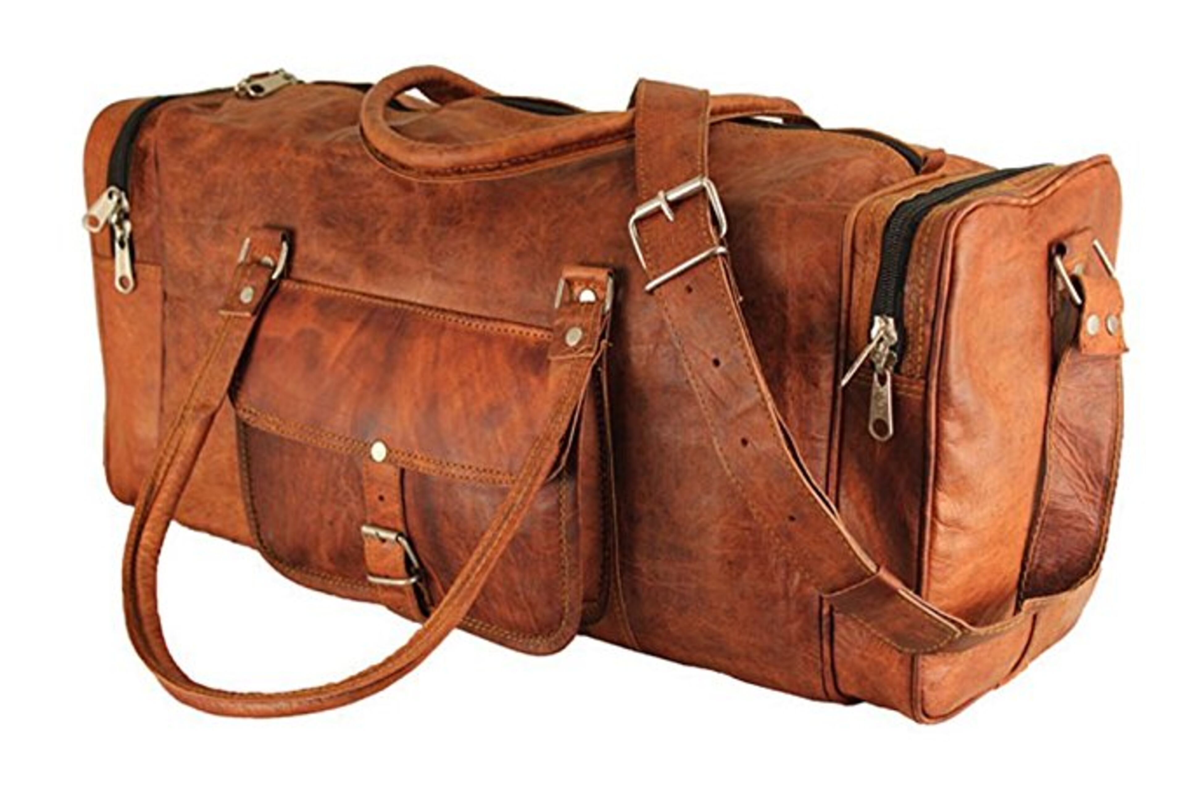 20” Leather Duffle Travel Overnight Gym Brown Sports Travel Weekend Bag Holdall