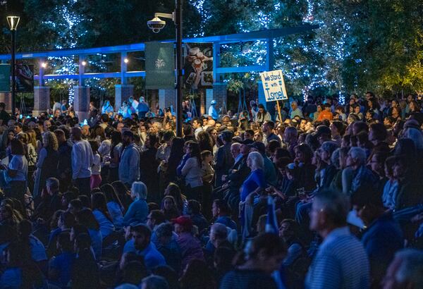 The rally drew thousands of people in support of Israel to the City Green at City Springs campus Tuesday night. Inside the Performing Arts Center were Mayor Rusty Paul, Atlanta Mayor Andre Dickens, a Democrat; Secretary of State Brad Raffensperger, a Republican; and more than a dozen state legislators.