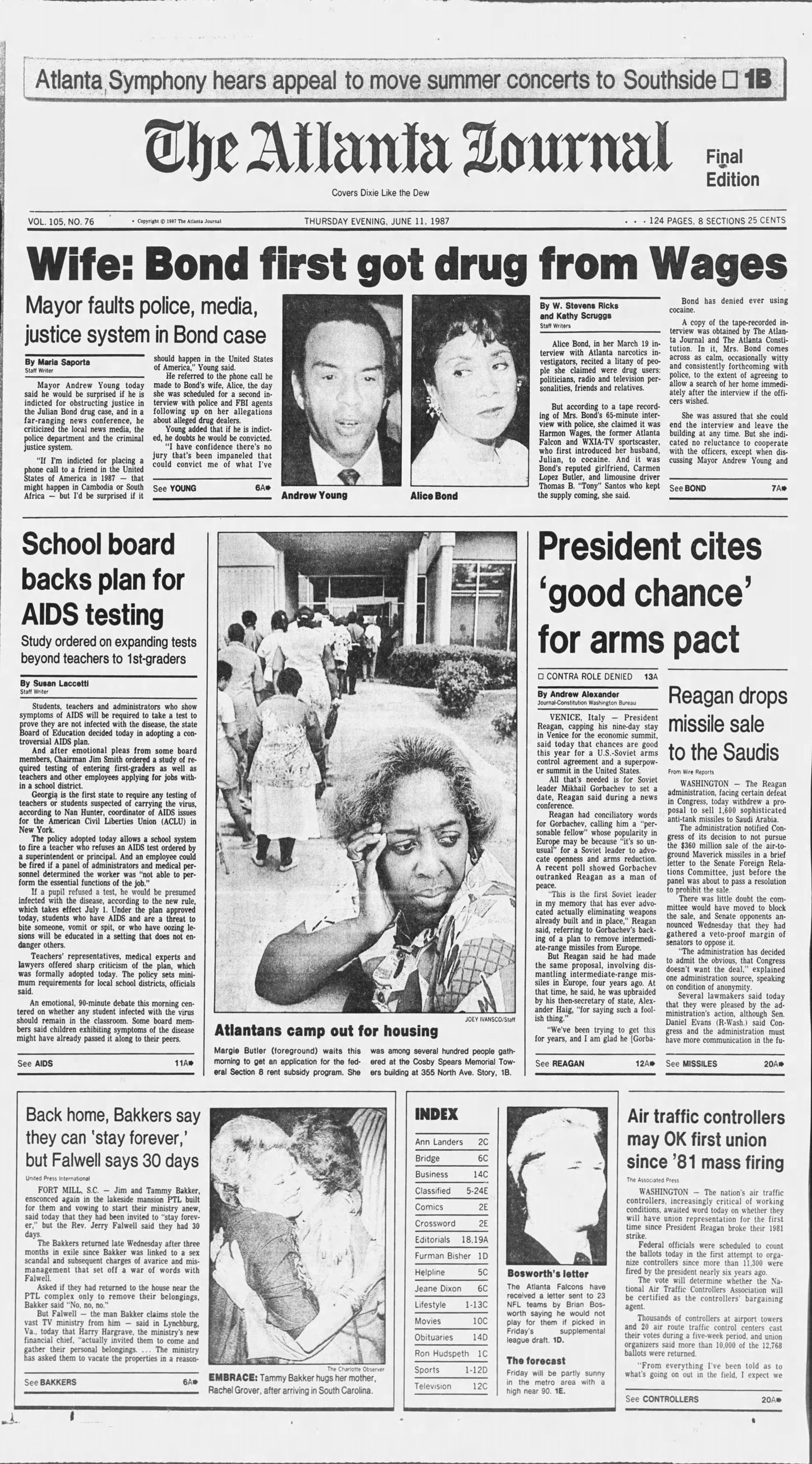 Also from the front page of The Atlanta Journal, because I couldn’t choose: The nation’s air traffic controllers, increasingly critical of working conditions, awaited word today on whether they will have union representation for the first time since President Reagan broke their 1981 strike.