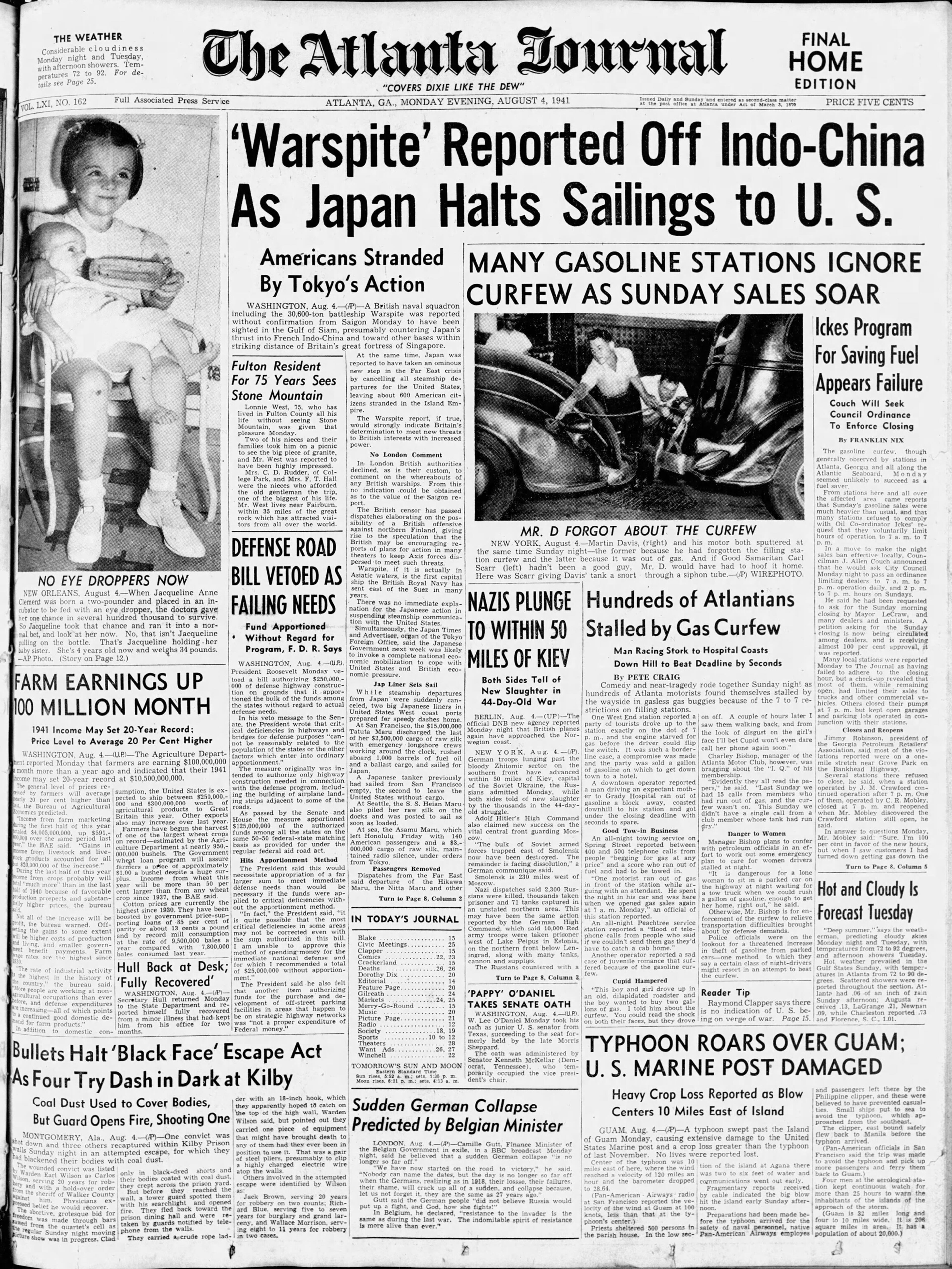 From the front page of The Atlanta Journal: Fulton resident for 75 years sees Stone Mountain. Lonnie West, 75, who has lived in Fulton County all his life without seeing Stone Mountain, was given that pleasure Monday. Two of his nieces and their families took him on a picnic to the see the big piece of granite, and Mr. West was reported to have been highly impressed. … Mr. West lives near Fairburn, within 35 miles of the great rock which has attracted visitors from all over the world.