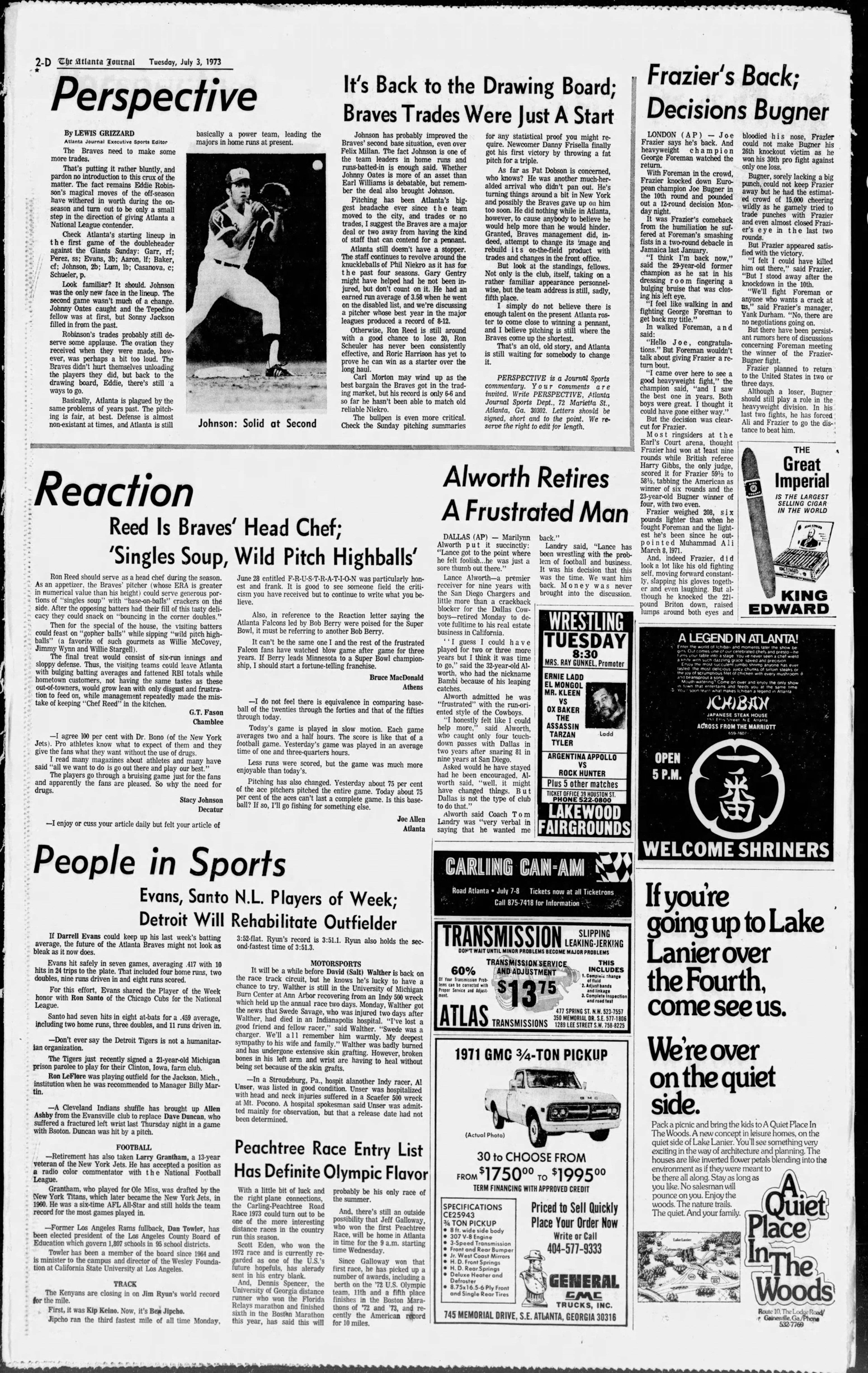 🍑 From the bottom of page 56 in The Atlanta Journal’s July 3, 1973, edition: “Peachtree race entry list has definite Olympic flavor.”