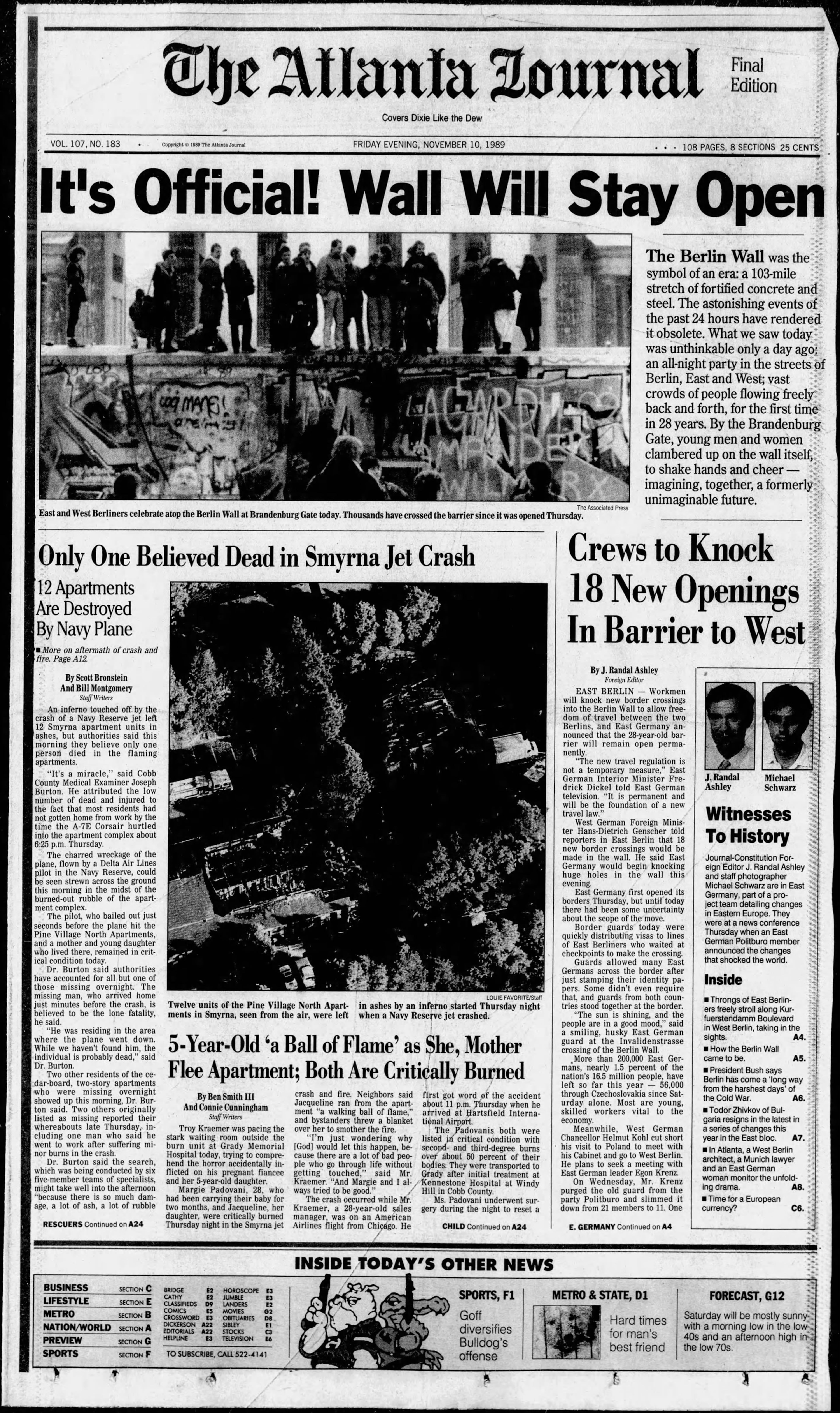 It’s official! Wall will stay open. The Berlin Wall was the symbol of an era: a 103-mile stretch of fortified concrete and steel. The astonishing events of the past 24 hours have rendered it obsolete. What we saw today was unthinkable only a day ago: an all-night party in the streets of Berlin, East and West; vast crowds of people flowing freely back and forth, for the first time in 28 years. By the Brandenburg Gate, young men and women clambered up on the wall itself, to shake hands and cheer — imagining, together, a formerly unimaginable future.