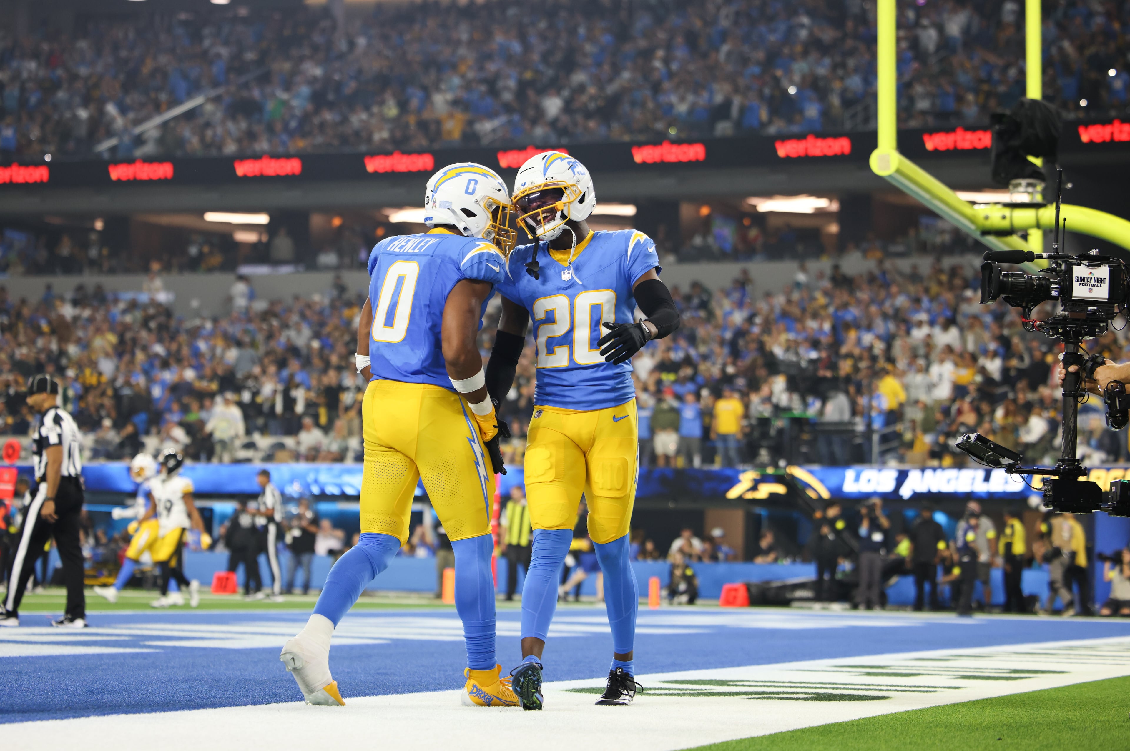In the fourth quarter, with the Steelers at the Chargers 10-yard line and threatening to score, Rodgers threw three straight incompletions – including an off-target, fourth-down throw to a blanketed Metcalf in the corner of the end zone – to end the drive empty-handed.