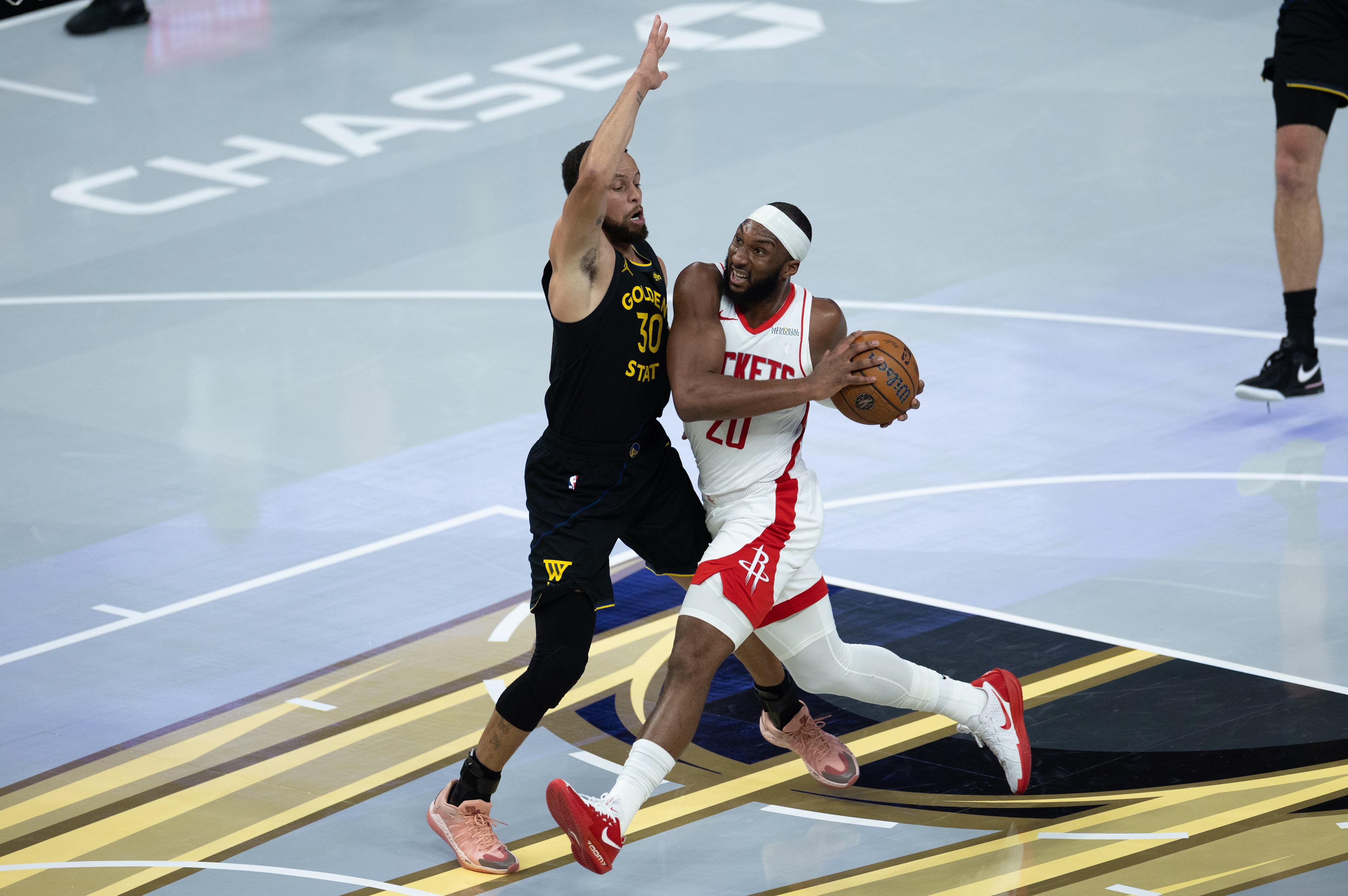The 37-year-old Curry, in his 17th NBA season, and Houston's Amen Thompson went down hard under the basket with 3:24 remaining and the game tied at 91 after Thompson’s drive to the hoop, which initially was whistled an offensive foul. Houston challenged and the call was overturned to a block by Curry — who grimaced in pain on the floor. He limped to the locker room with 35.2 seconds left.