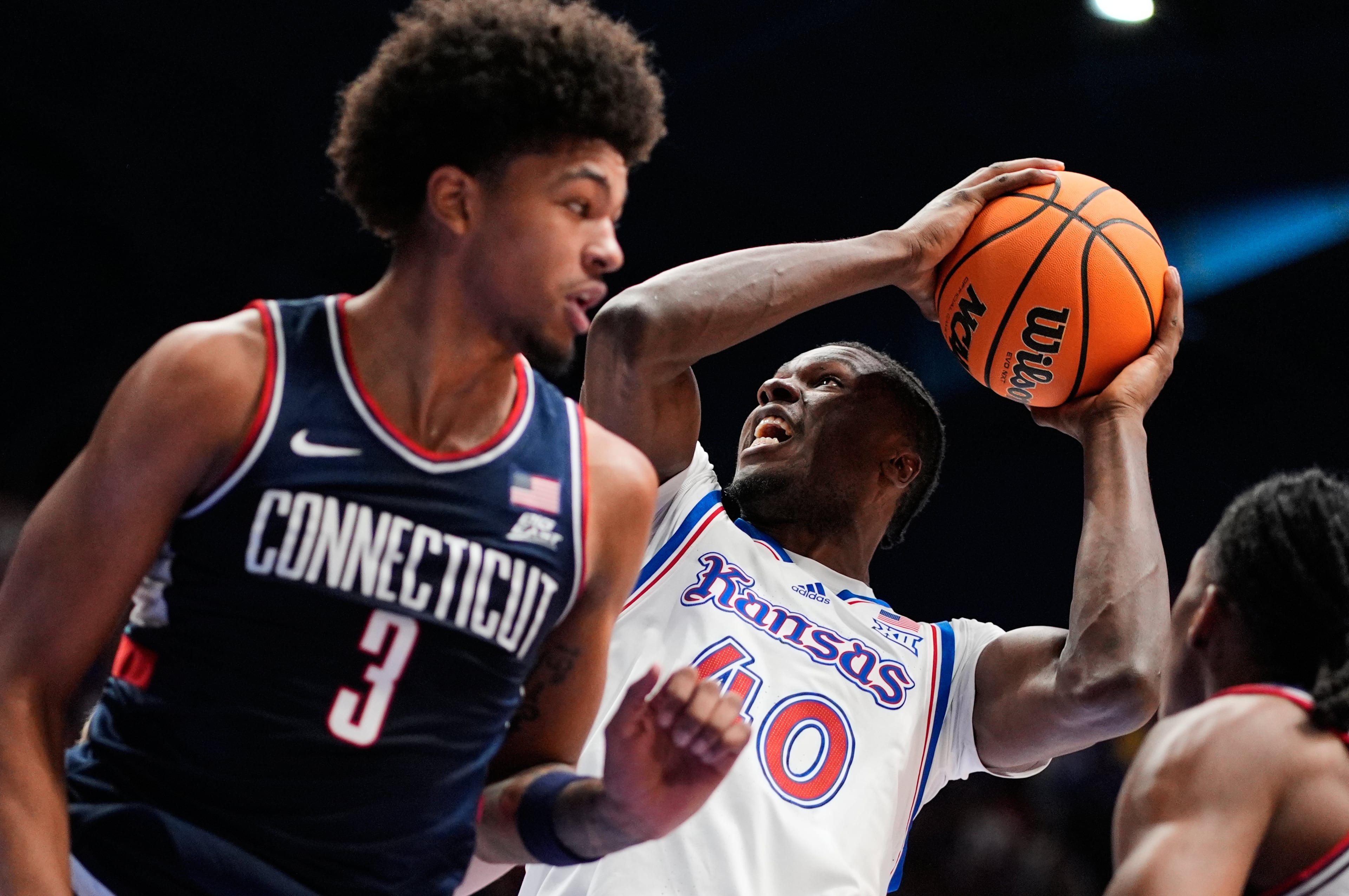 Braylon Mullins' breakout performance lifts No. 5 UConn over No. 21 Kansas 61-56 at Allen Fieldhouse