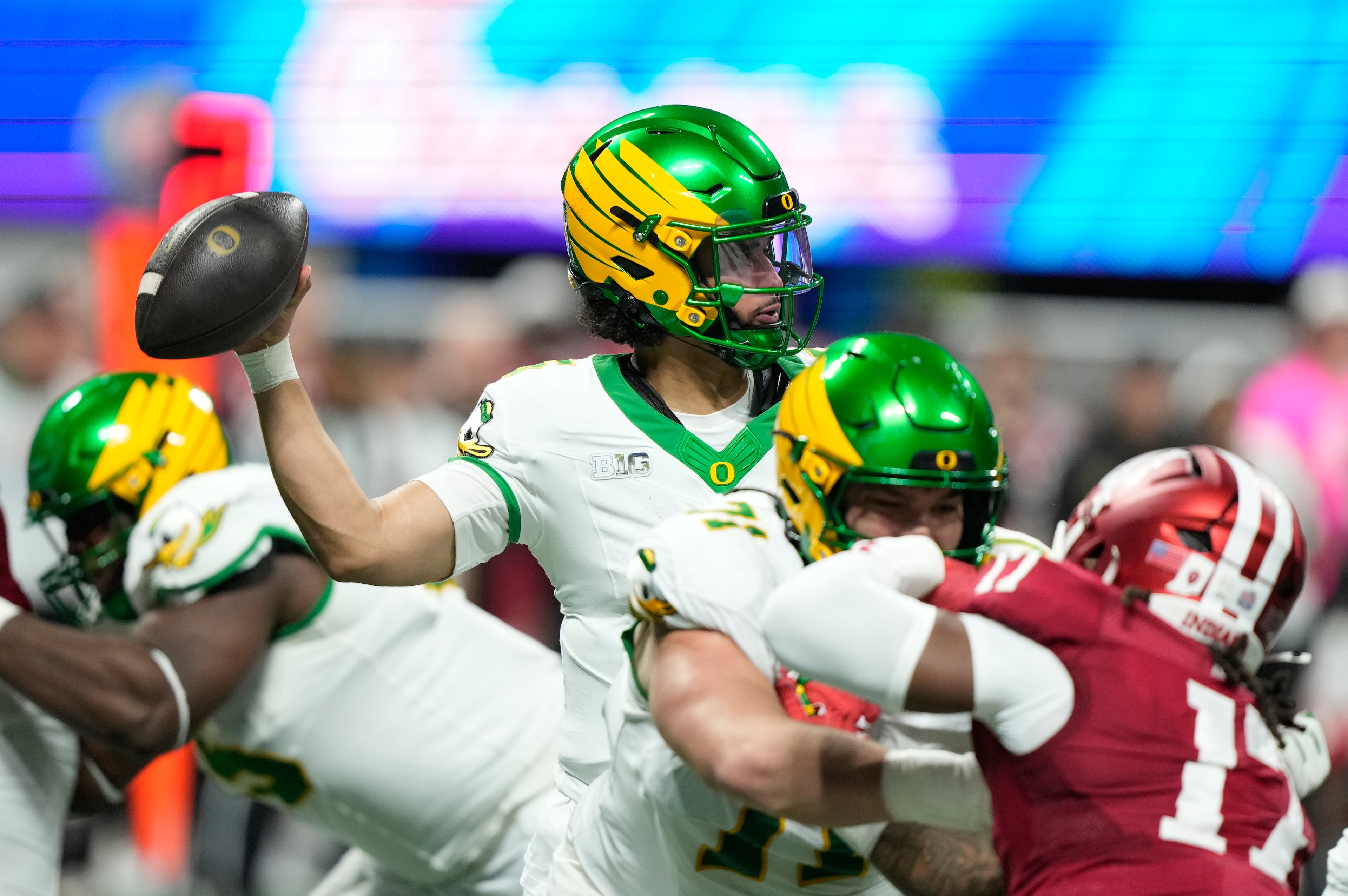 Moore said Friday after a 56-22 loss to No. 1 Indiana in a College Football Playoff semifinal that he was uncertain on declaring for the draft or returning to Oregon for a final season. Moore went 24-of-39 for 285 yards with an interception and two fumbles against the Hoosiers.