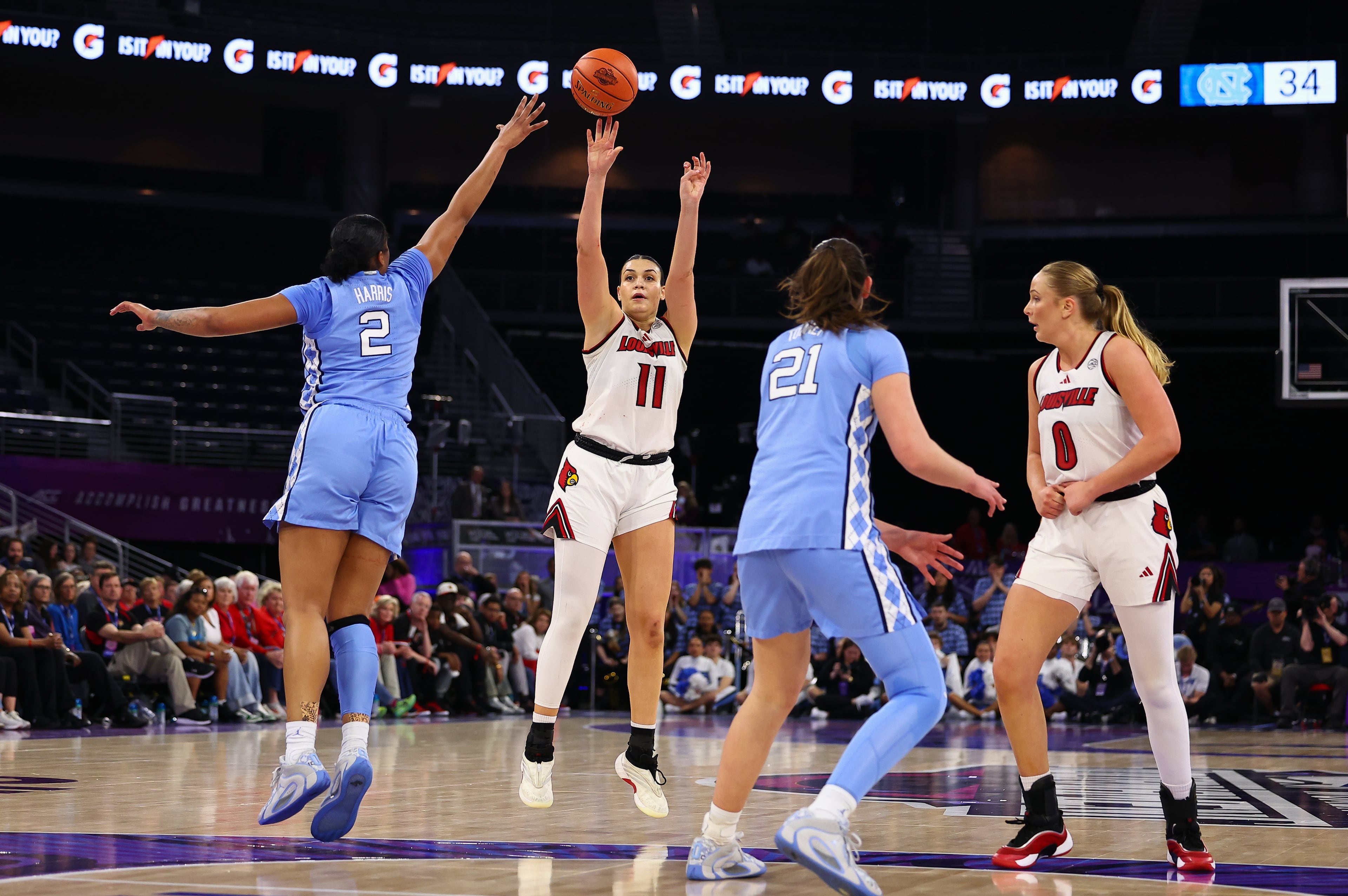 North Carolina (26-6) plays No. 12 and second-seeded Louisville in the semifinals Saturday.