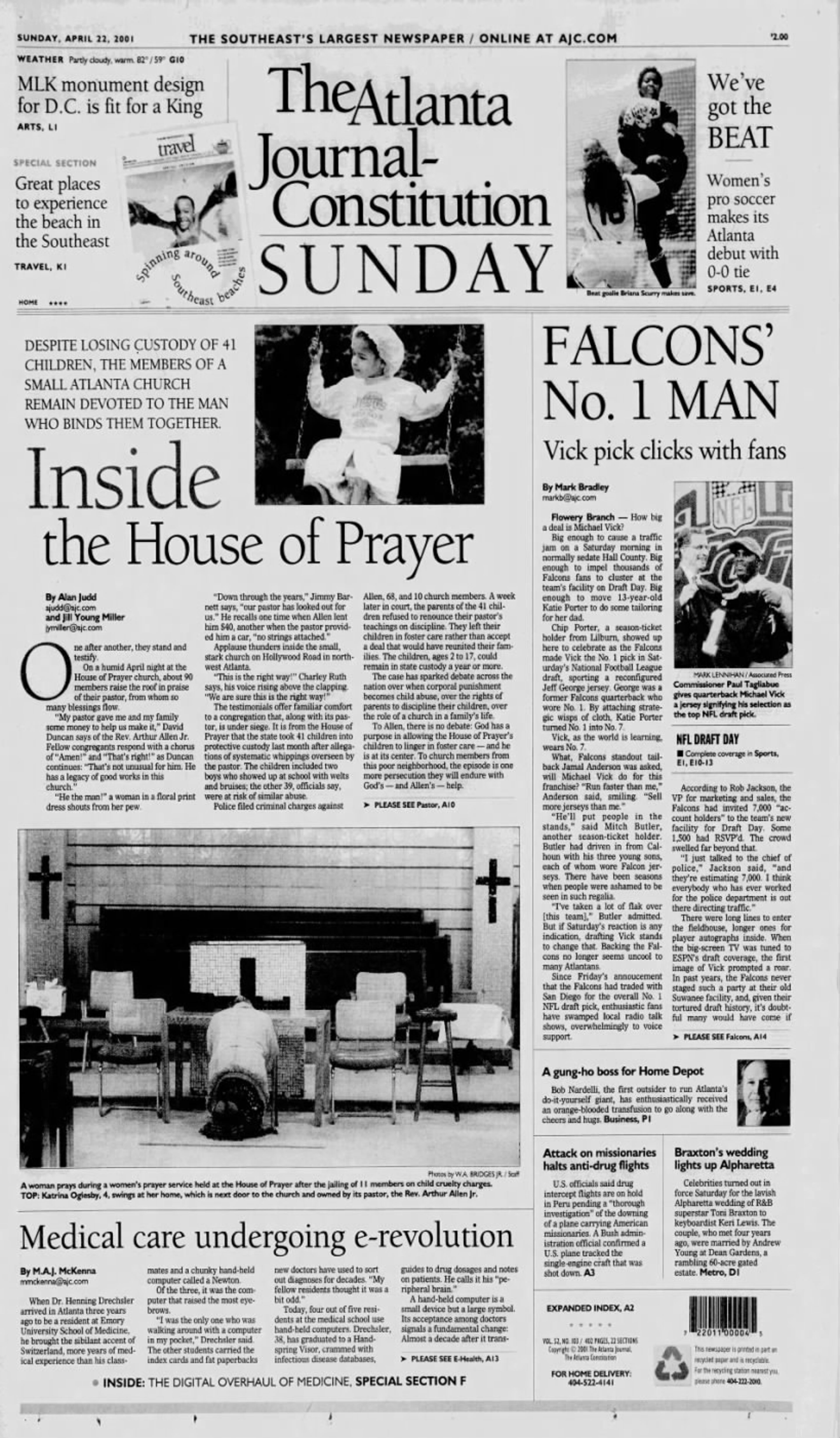 From the front page of The Atlanta Journal-Constitution: We’ve got the BEAT. Womens’ pro soccer makes its Atlanta debut with 0-0 tie. / Falcon’s No. 1 Man: Vick pick clicks with fans
