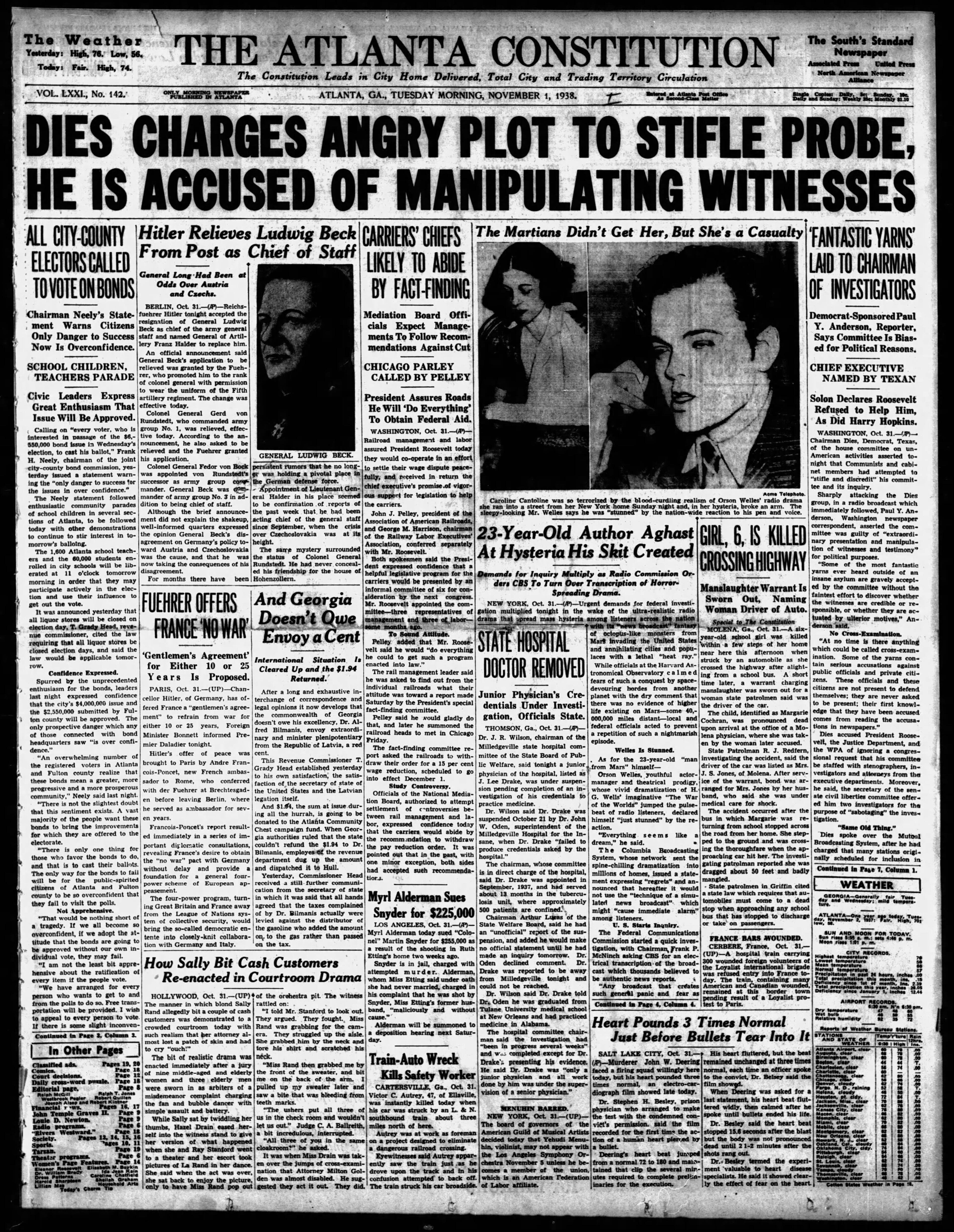 The Atlanta Constitution continued reporting on the “mass hysteria” triggered by Orson Welles’ fictional news broadcast “The War of the Worlds.”