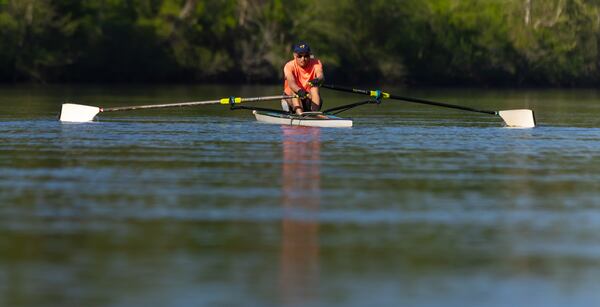 AJC photographer John Spink captured Sujit Banerjee, a 10-year member of the Atlanta Rowing Club, taking advantage of the weather with an excursion on the Roswell-area stretch of the Chattahoochee River.