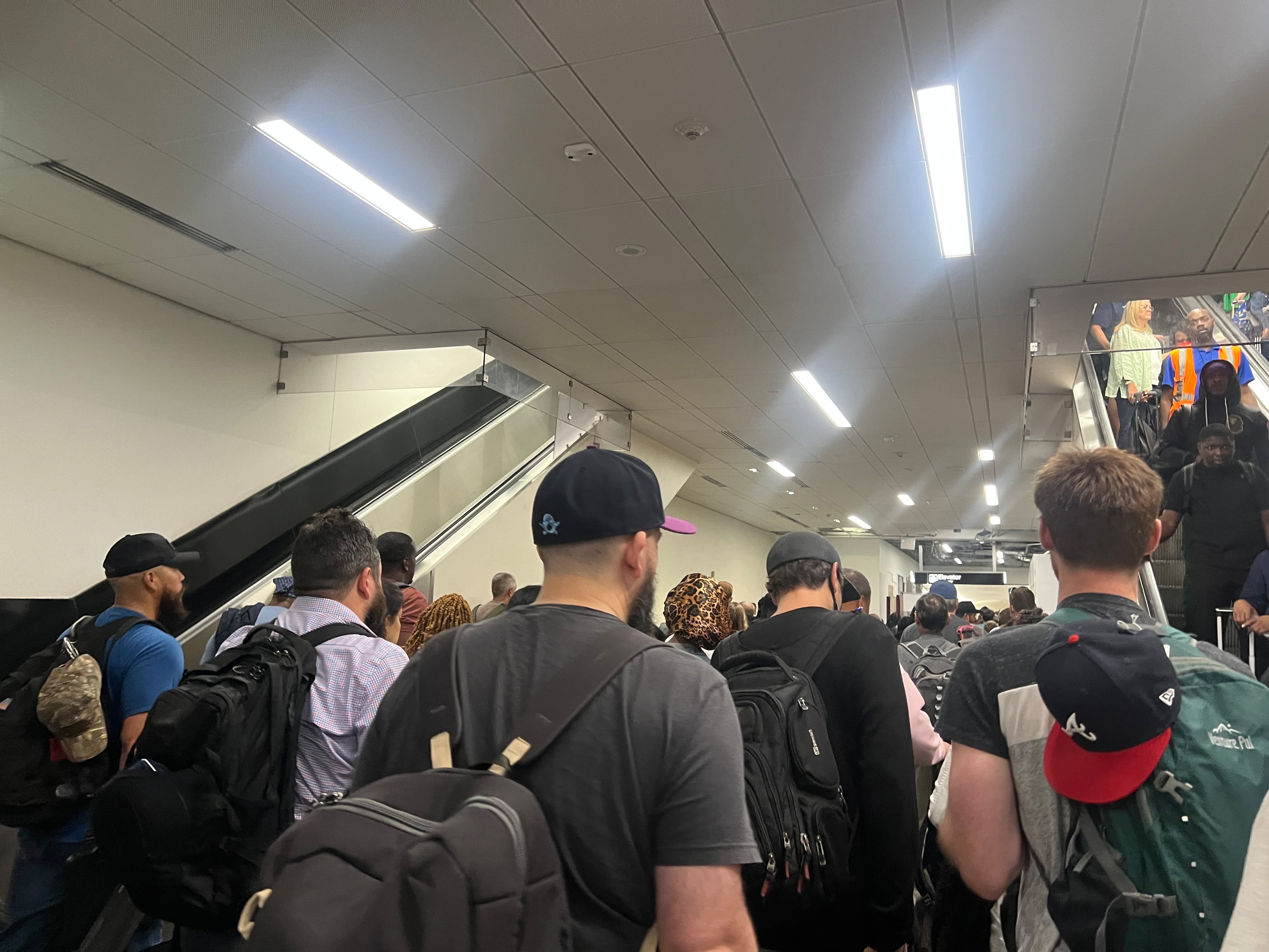 After 4 p.m., the airport posted that the Plane Train was still operating with limited service, warning: “We ask for your patience as wait times are extended and may vary. Please plan ahead and give yourself ample time to catch your flight, given this delay.”