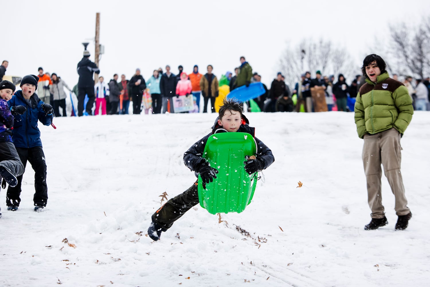 A 10-year-old boy was injured Friday after hitting an embankment while sledding in the snow in Atlanta, according to the fire department.
