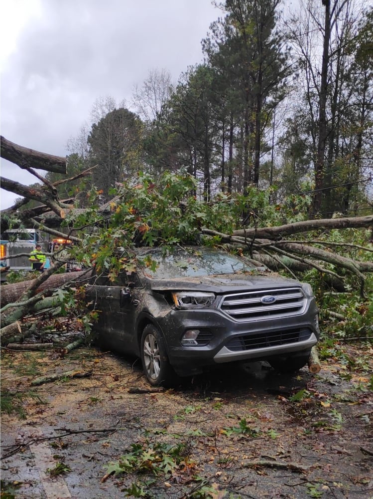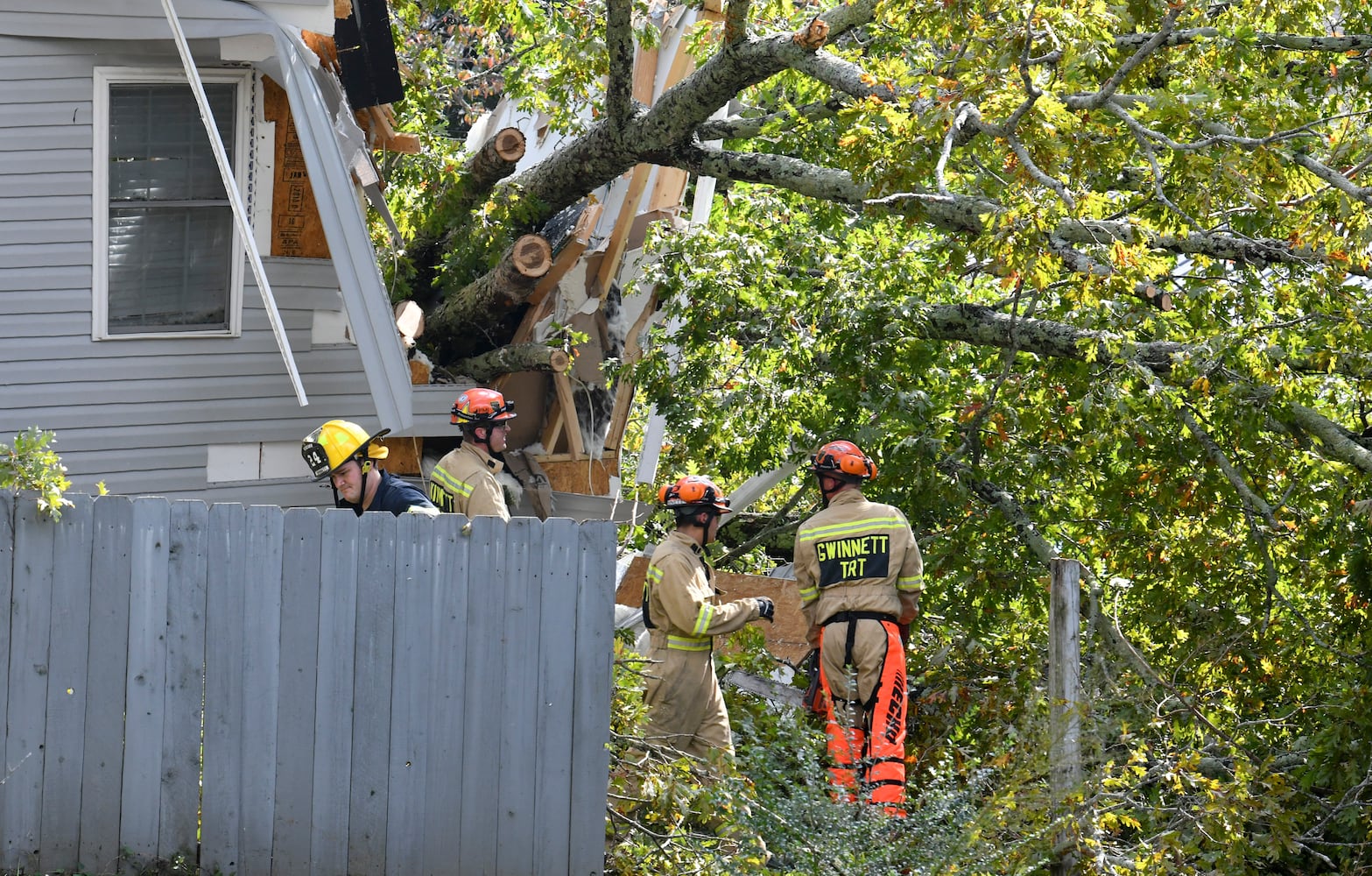 In Gwinnett, officials said calls about wind-related incidents began pouring in just before 5 a.m. One person was taken to a hospital to be checked for injuries after a tree fell on a house on Smoke Hill Lane in the Hoschton area, according to Gwinnett fire.