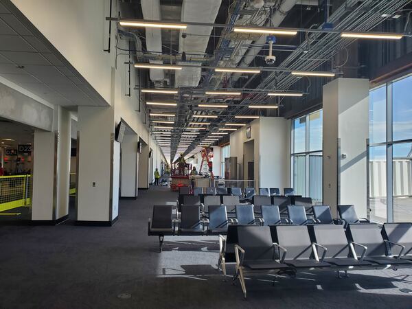 At Hartsfield-Jackson International Airport, workers put the finishing touches on gate areas to complete the first phase of a project to widen Concourse D on Wednesday, Sept, 4, 2024. (Courtesy of Hartsfield-Jackson International Airport)