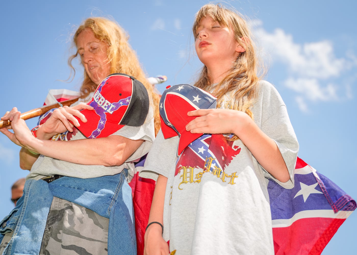 “These protesters are against our Christian faith. They are anti-Christ,” SCV member Kenneth Buggay said in a fiery closing prayer shouted over a chorus of boos from the counterprotesters about 50 yards away. “We have been fighting this war since 1861. We will be victorious.”