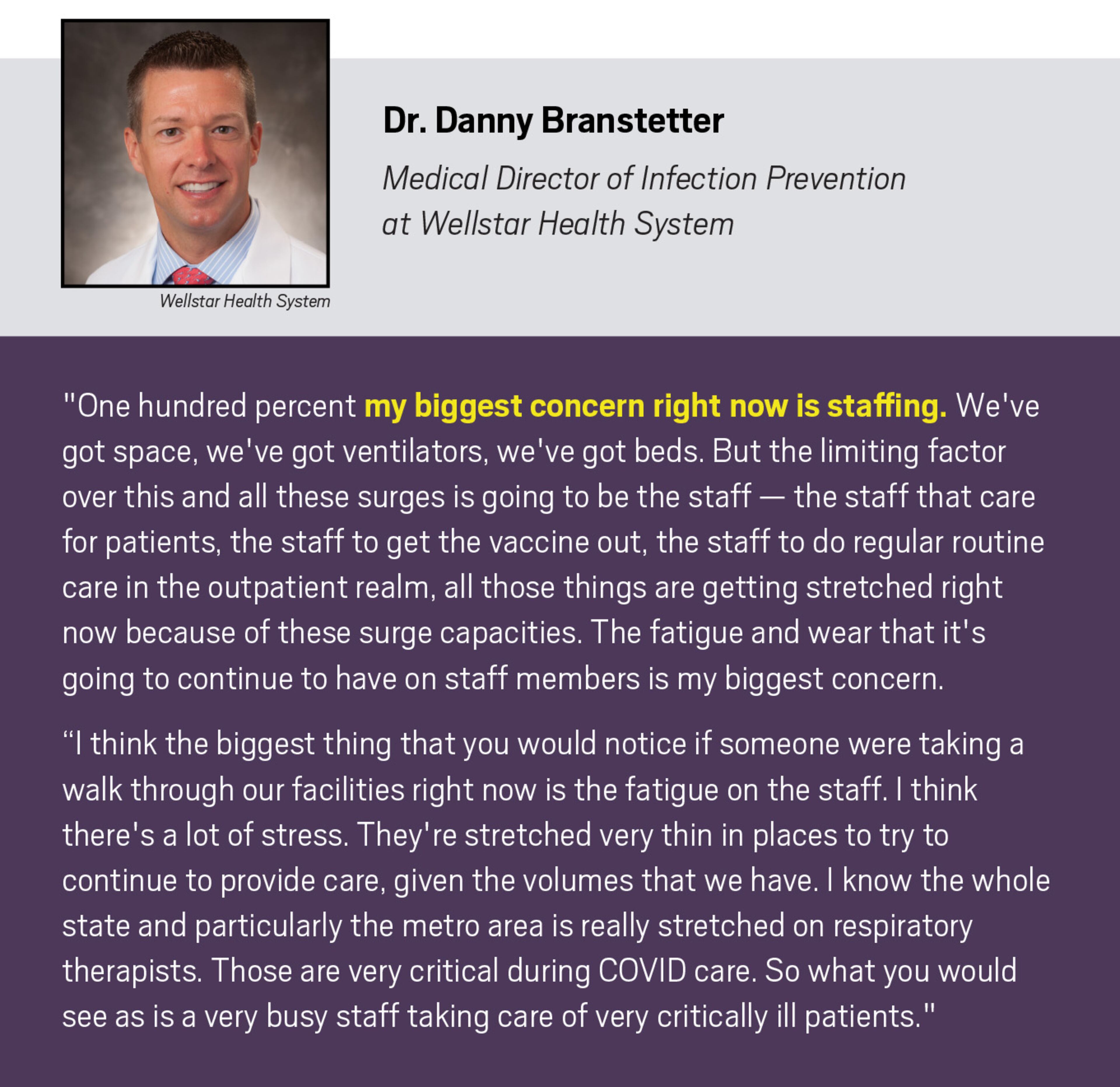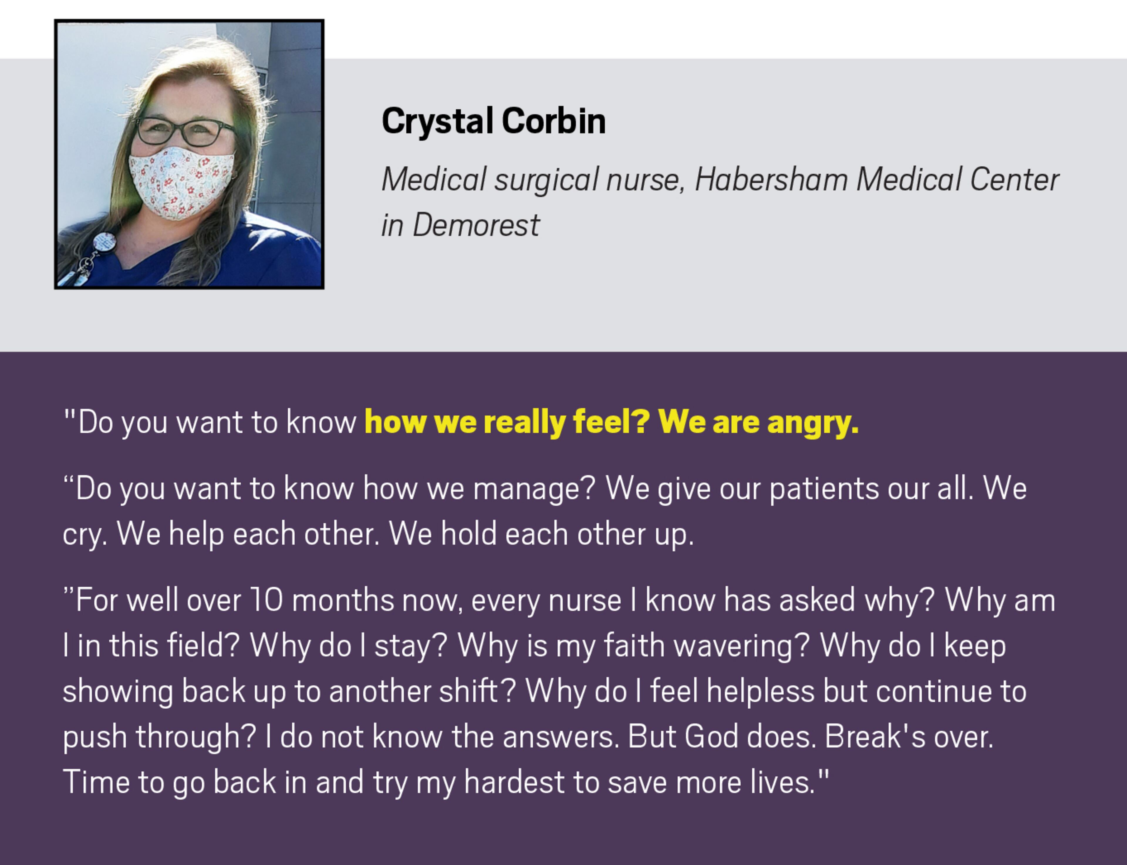 We asked health care workers across Georgia to describe how they’re dealing with the surge in coronavirus cases and deaths. Here are excerpts from their experiences as they described them to The Atlanta Journal-Constitution.