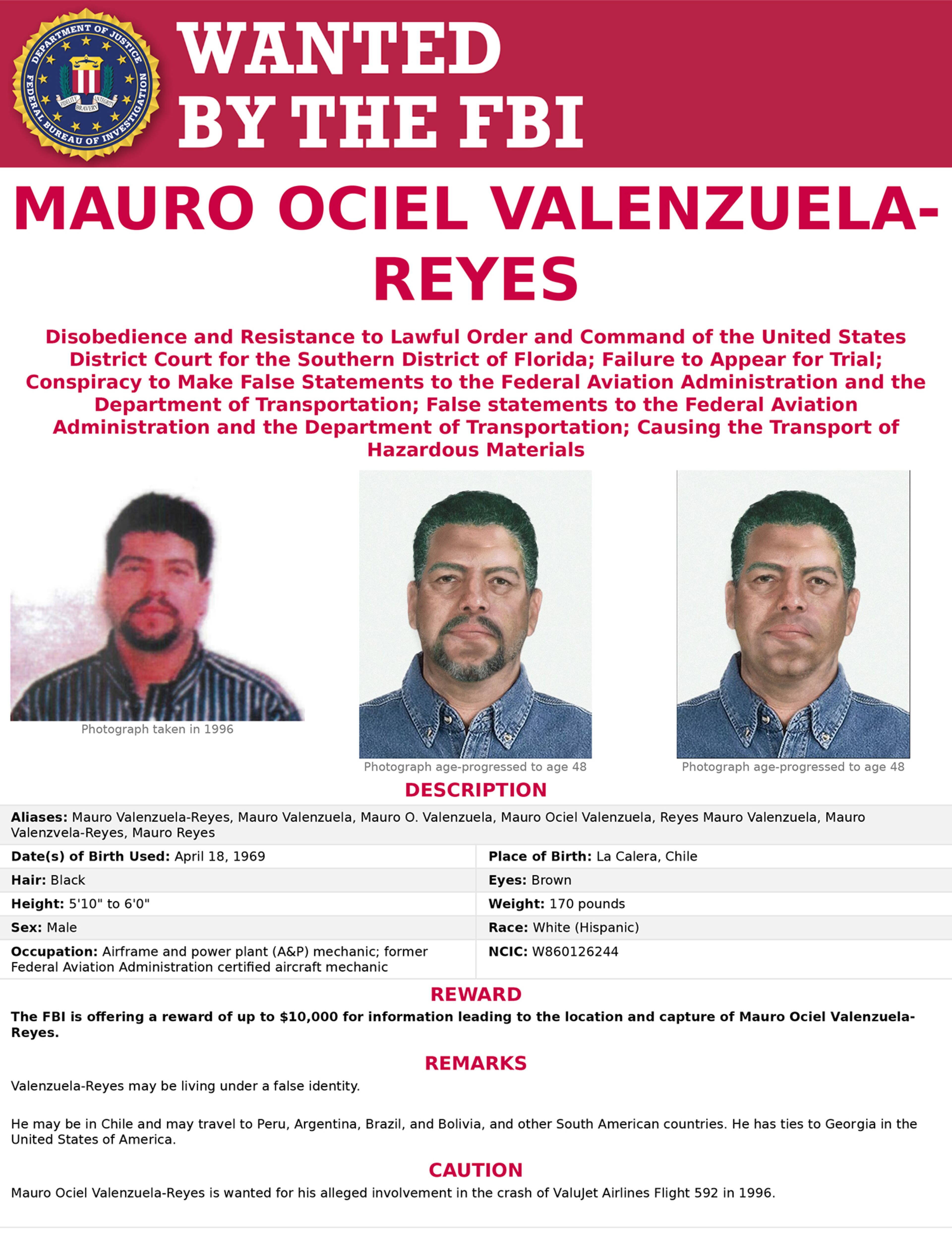 The FBI has announced a $10,000 reward for an airline mechanic with Atlanta ties alleged to have played a role in the 1996 crash of a ValuJet plane in the Florida Everglades.