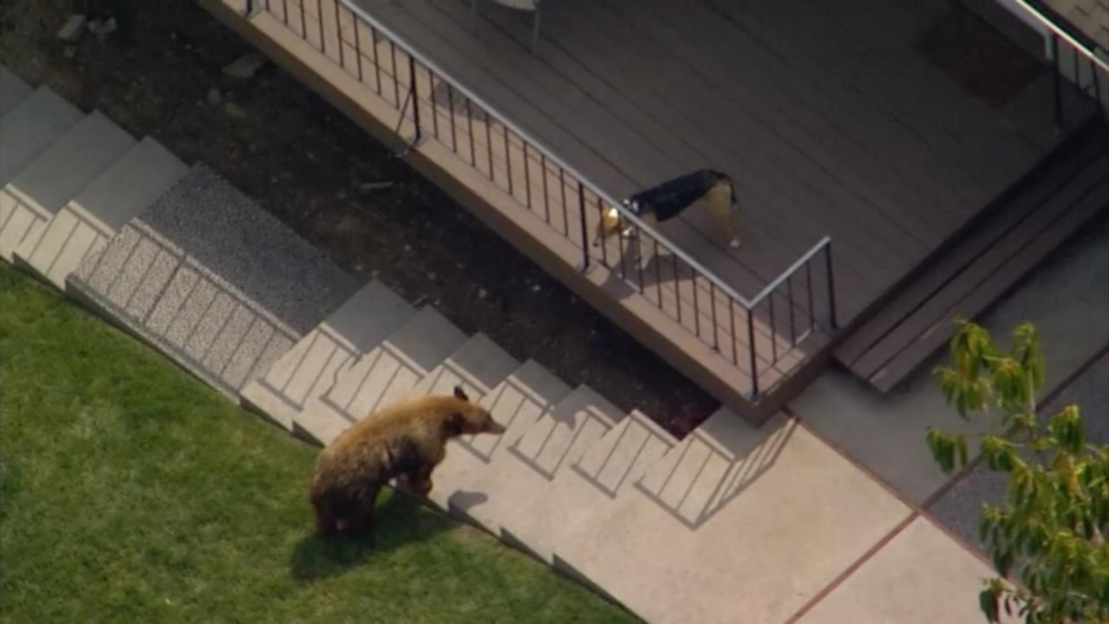 Dog chases bear around neighborhood
