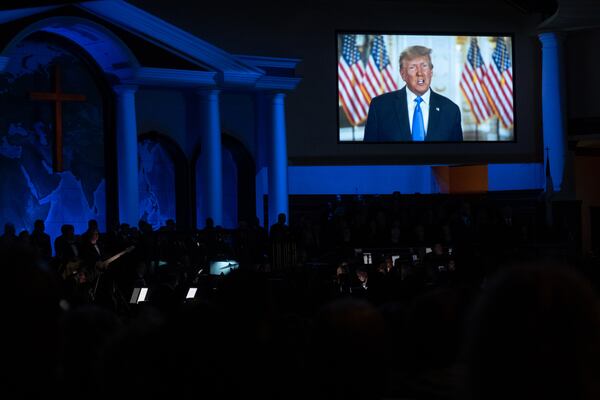 During the regular Sunday service, George told the congregation he had heard from former President Donald Trump’s team that he had hoped to attend the evening service but was unable to do so.