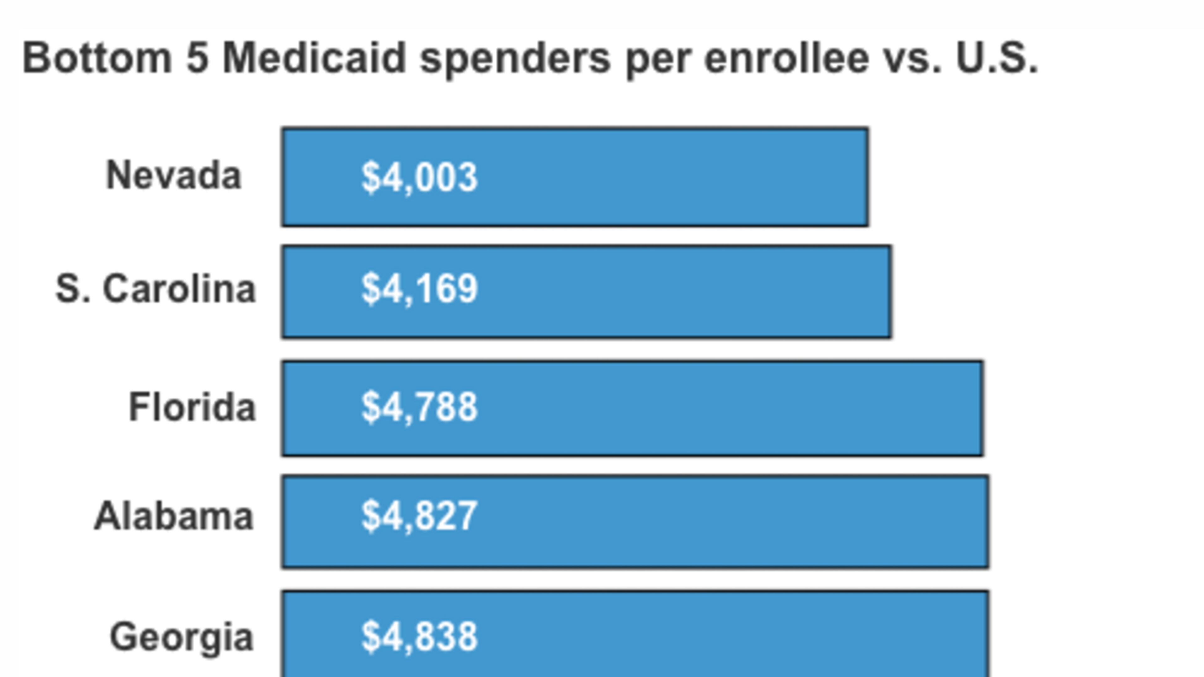 Bottom 5 Medicaid spenders per enrollee vs. U.S.