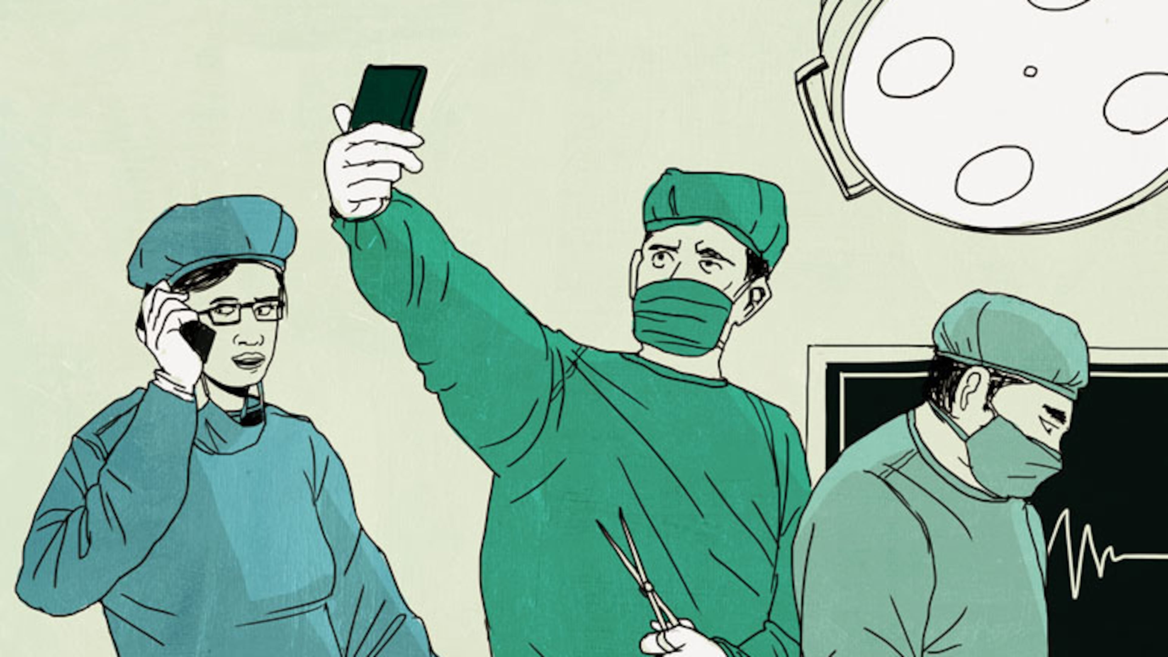 Next time you’re on the operating table and you have one last look around as the anesthesiologist approaches, don’t be too sure that that person in scrubs looking at a smartphone is pulling up vital health data. He or she might be texting a friend, or ordering a new carpet.