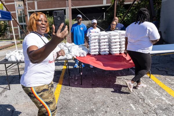 Unlike the major Georgia homeless organizations that feed regular populations daily, Holmes’ is a small family operation run out of her little black sedan. They distribute meals a couple times a month, and hold occasional giveaway events for the needy at the holidays or back-to-school time. Sometimes they distribute blankets.