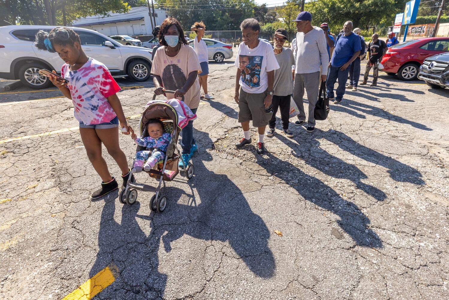 On Saturday, the people took their meals, maybe the swag, and then dispersed quickly. Down a sidewalk man pushed an older person on a rolling walker. A woman rolled away a baby stroller and walked a small child. People strolled across streets, into parks, into side streets. Almost as soon as the crowd convened, it was gone.