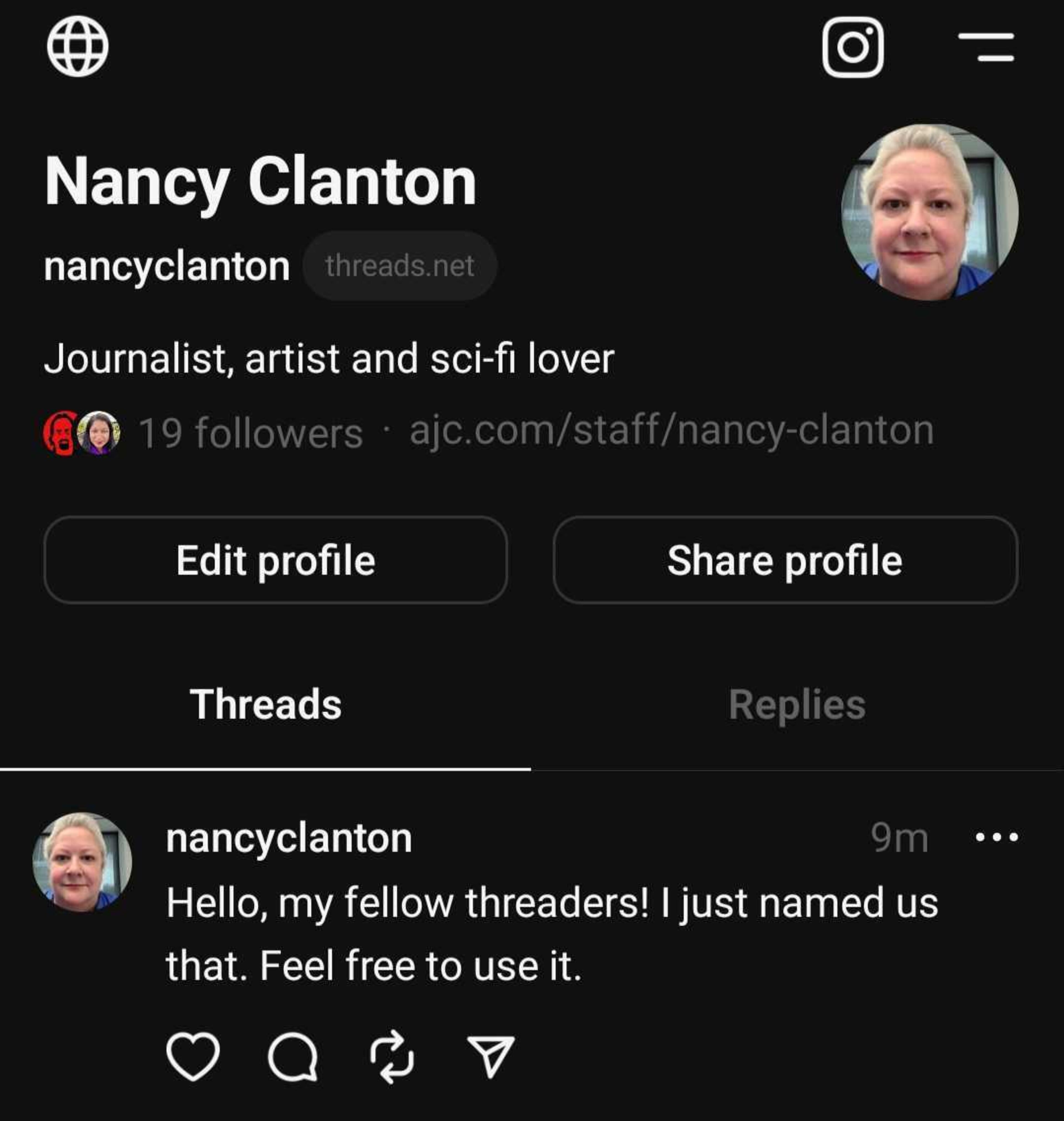 For example, if you’re already following The Atlanta Journal-Constitution on Instagram (@ajcnews, www.instagram.com/ajcnews/) you will automatically follow the news organization on Threads (www.threads.net/@ajcnews).