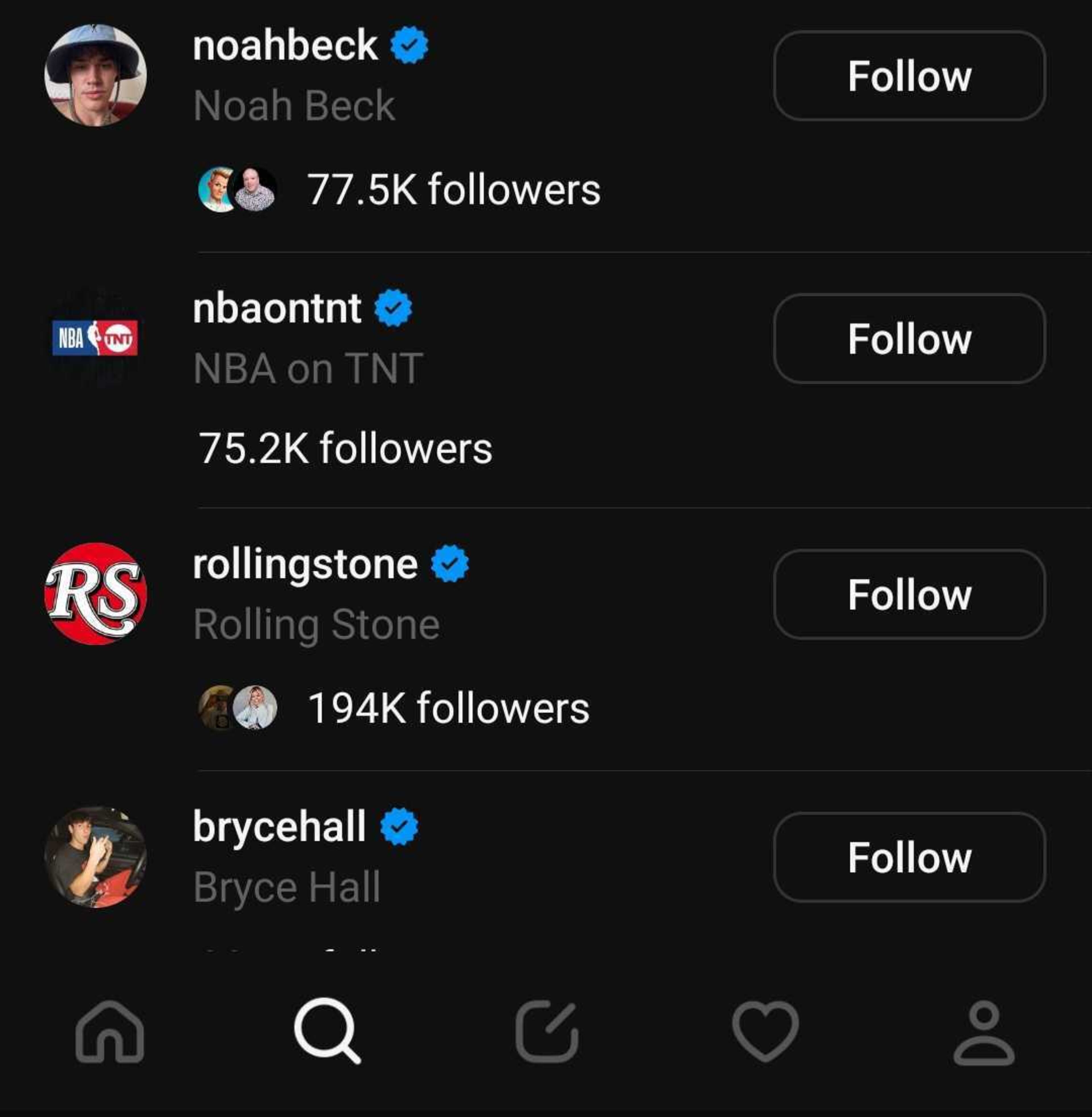 You can also follow accounts not on your Instagram list by using the magnifying glass.