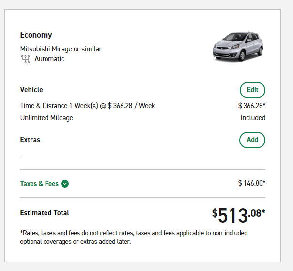 Just for fun, I looked up the cost to rent an economy car from Enterprise Rent-A-Car at the Honolulu International Airport location for one week starting Jan. 3, 2024. I turned down all add-ons. The cost: $513.08 including taxes and fees.