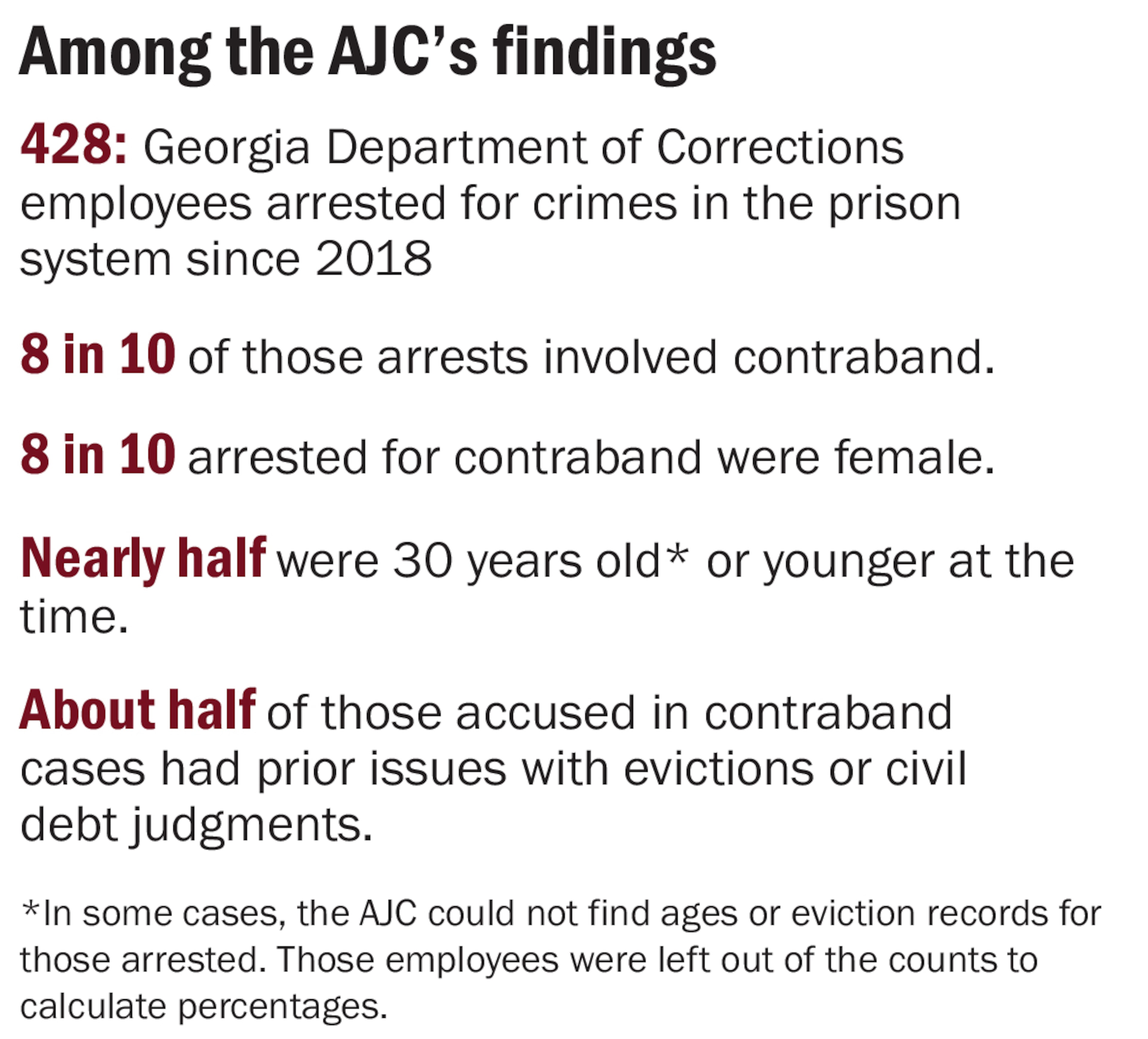At Calhoun State Prison, the AJC found, since 2018 at least 19 employees have been caught bringing in contraband.