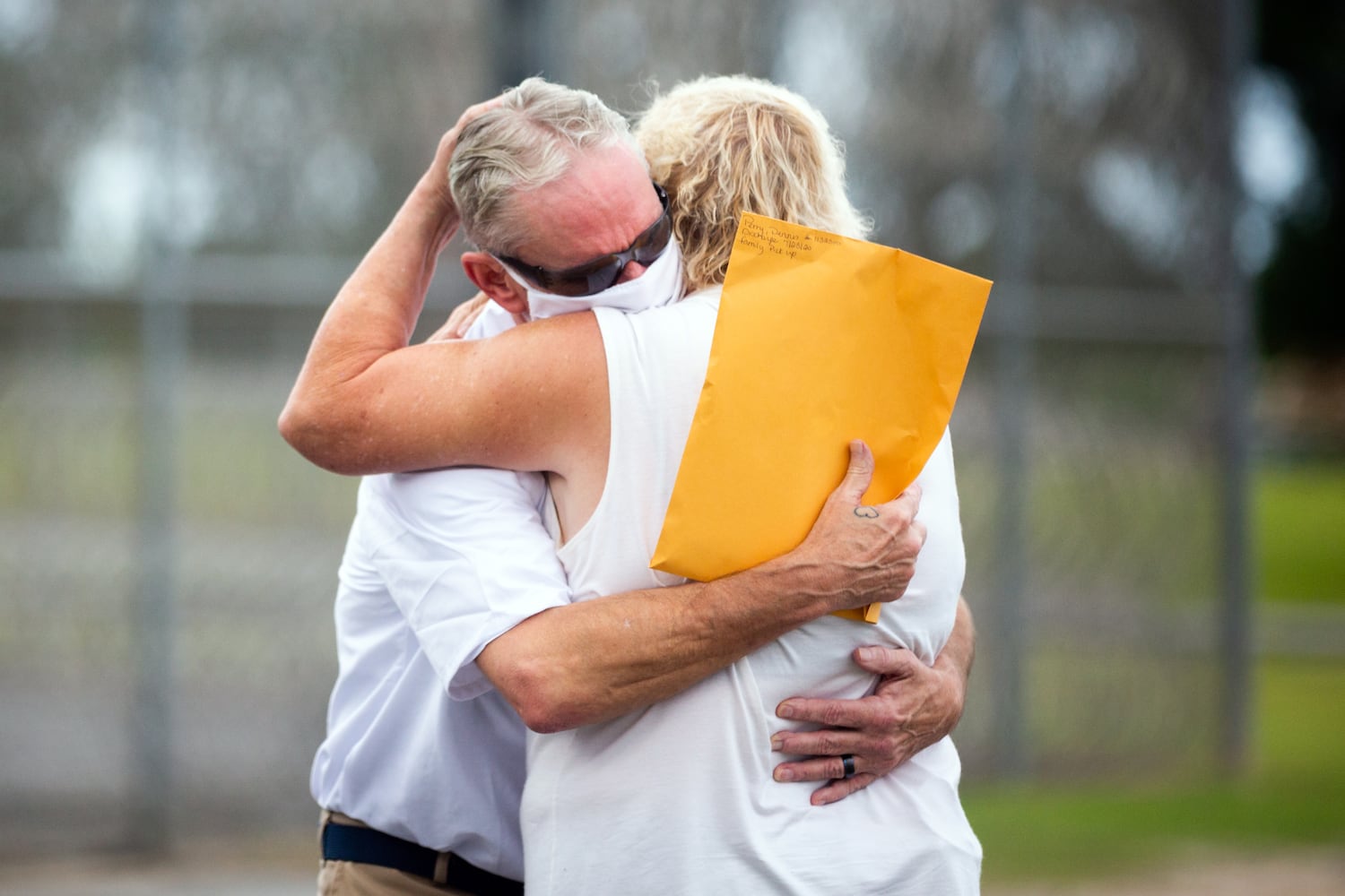 With a loud clank, the gate unlocked, and Perry raised his left arm in celebration. Cheers rose from loved ones and attorneys in the parking lot. Without speaking, the husband and wife embraced in a long hug while others applauded.