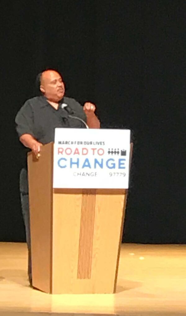 Martin Luther King III, son of the assassinated civil rights icon, was the first speaker.