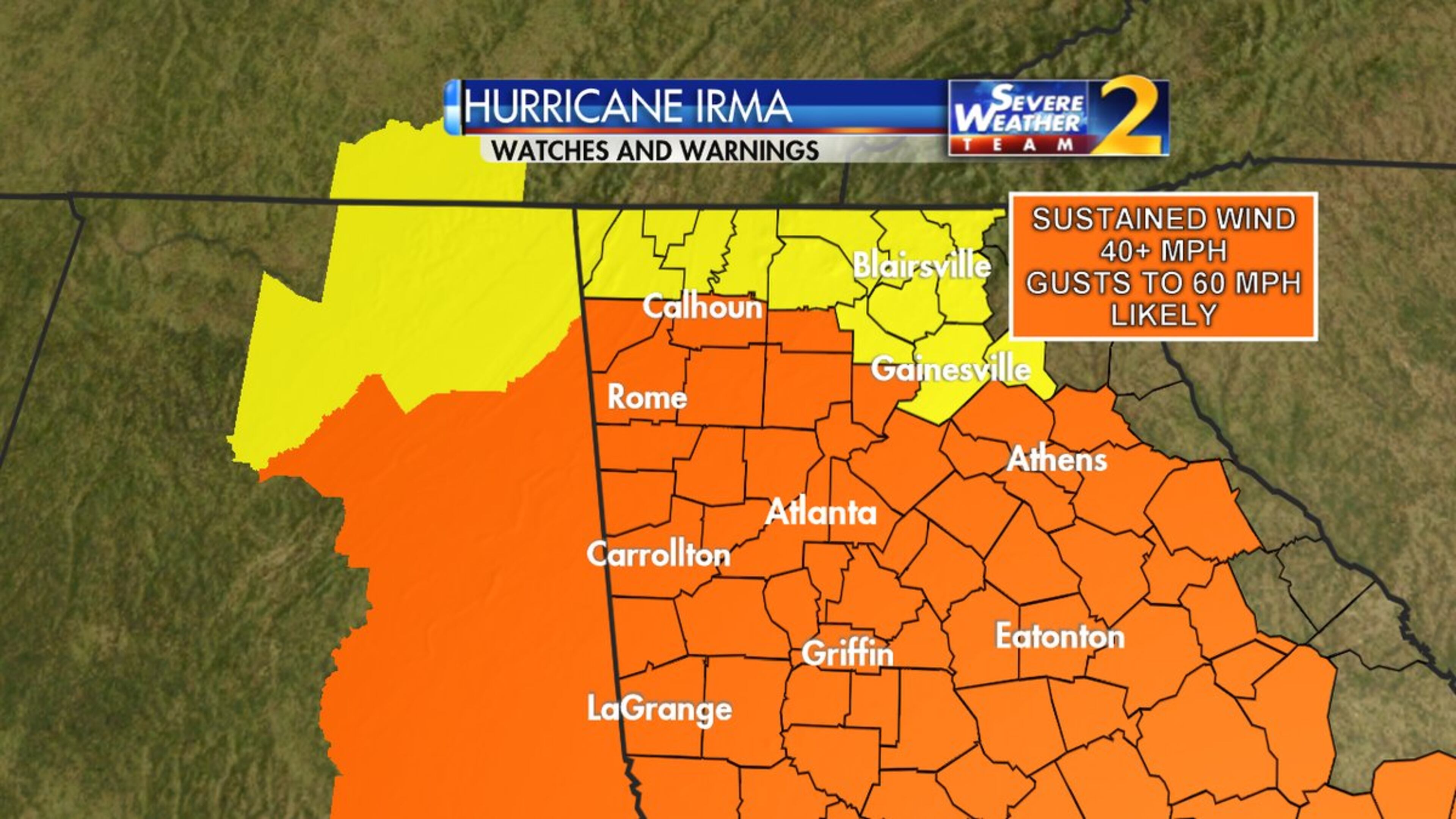 Irma: Tropical storm warning, flash flood watch for metro Atlanta