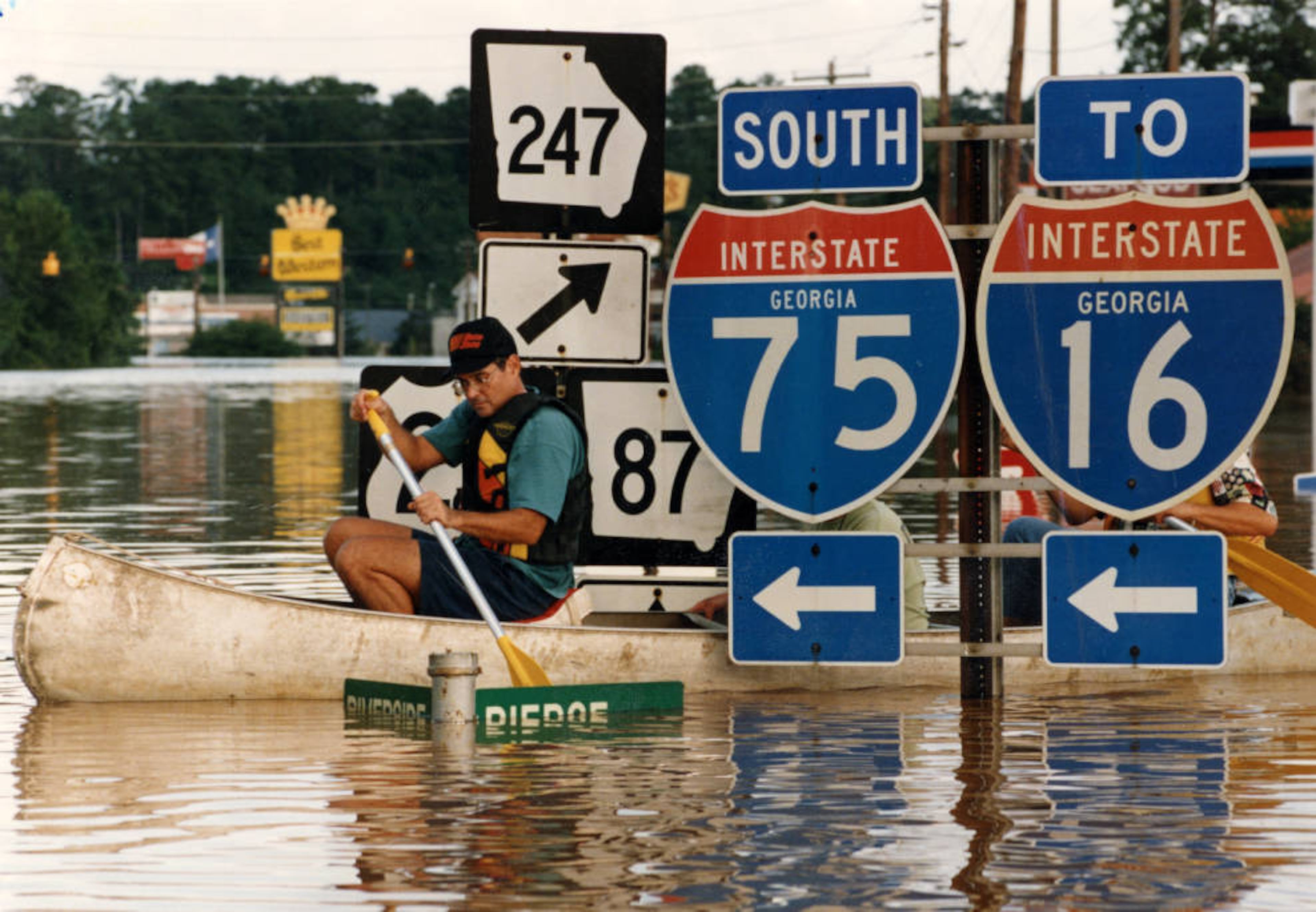 “Tuesday, July 5, 2:30 a.m. -- Teresa Beyah probably never knew the floods had even begun when her car became airborne, hydroplaning on a flooded intersection in Spalding County. She was killed in the crash and was the flood’s first known victim,” Bronstein wrote.